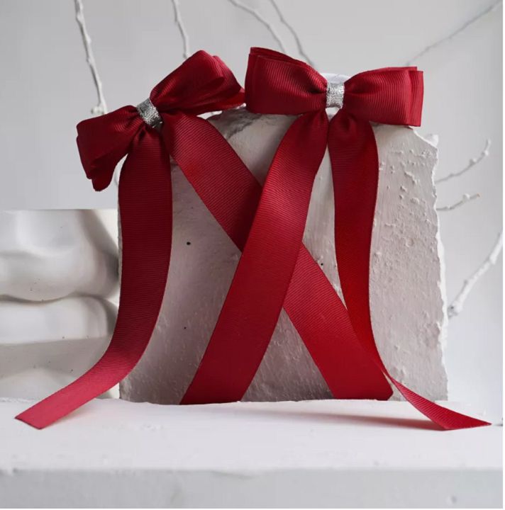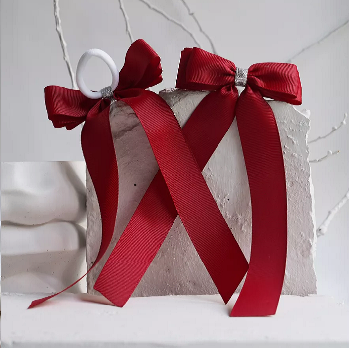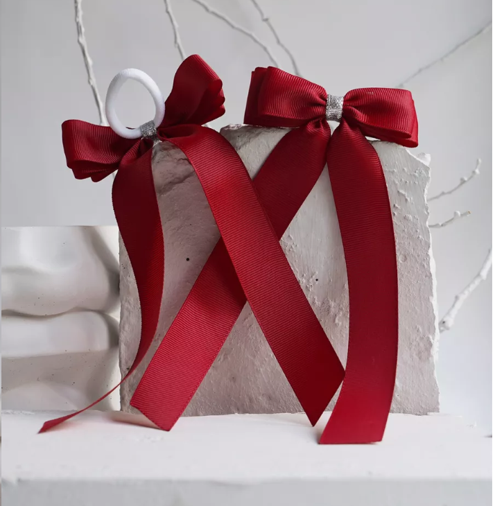 2 'Li Set Bordo Gümüş Detaylı Kurdele Lastik Fiyonk Toka