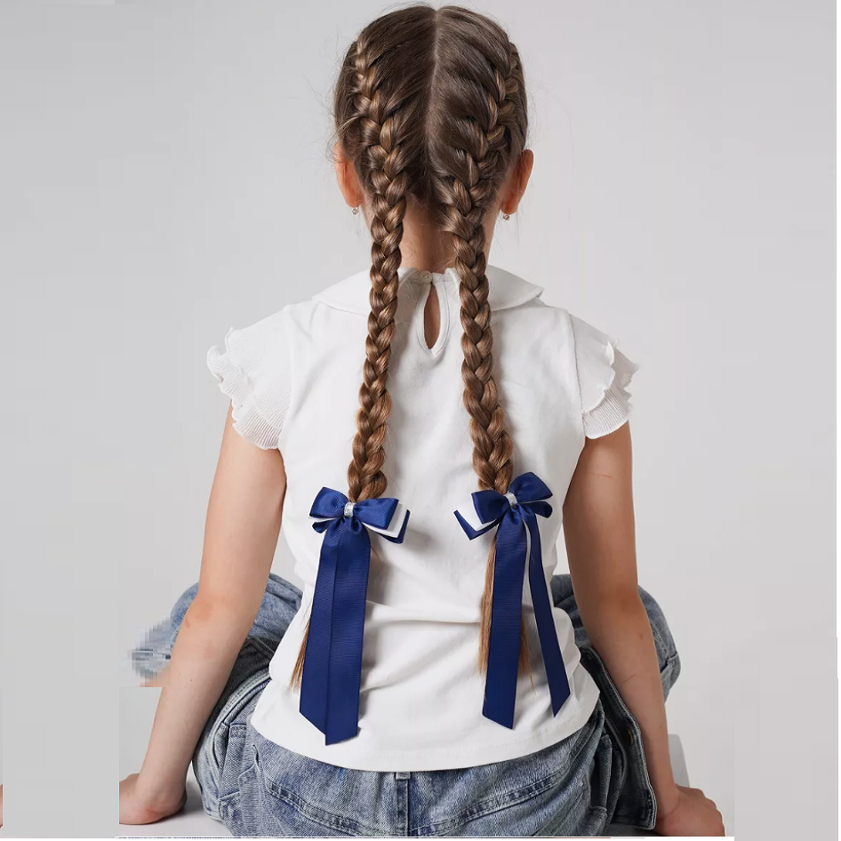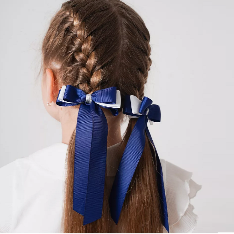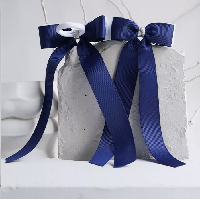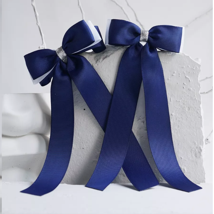 2 'Li Set Lacivert Beyaz Gümüş Detaylı Kurdele Lastik Fiyonk Toka