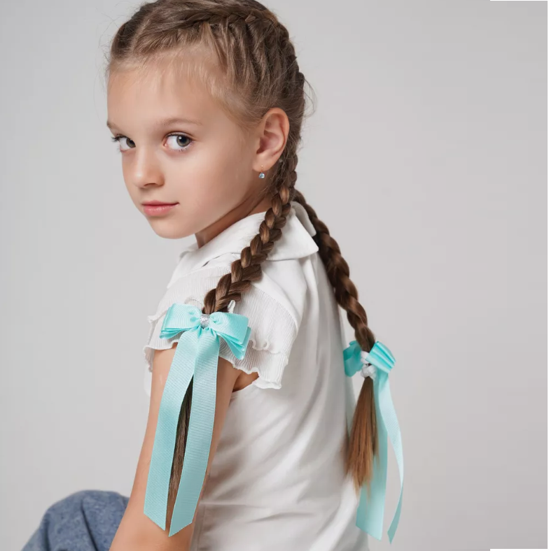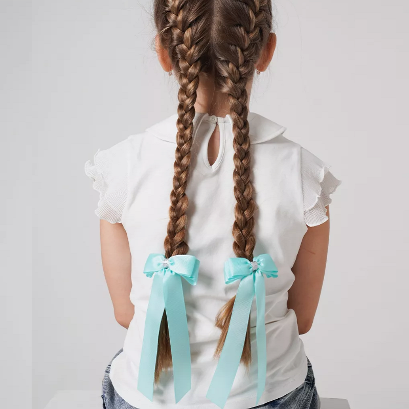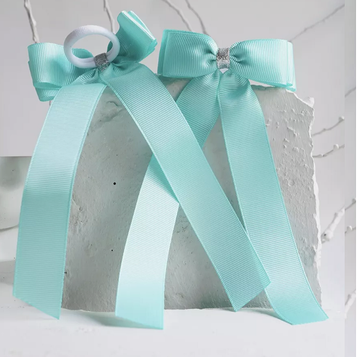 2 'Li Set Su Yeşili Gümüş Detaylı Kurdele Lastik Fiyonk Toka