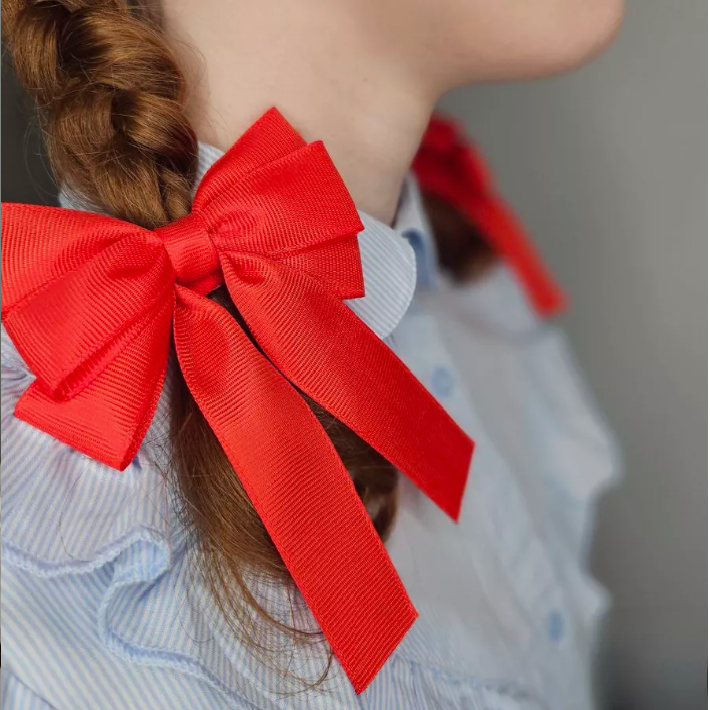 2'li Set Kırmızı Kurdele Lastikli Fiyonk Toka, Lastikli Tokalar, Okul Tokaları, Çocuk Tokaları