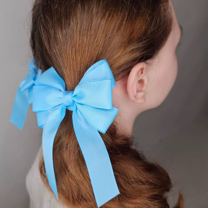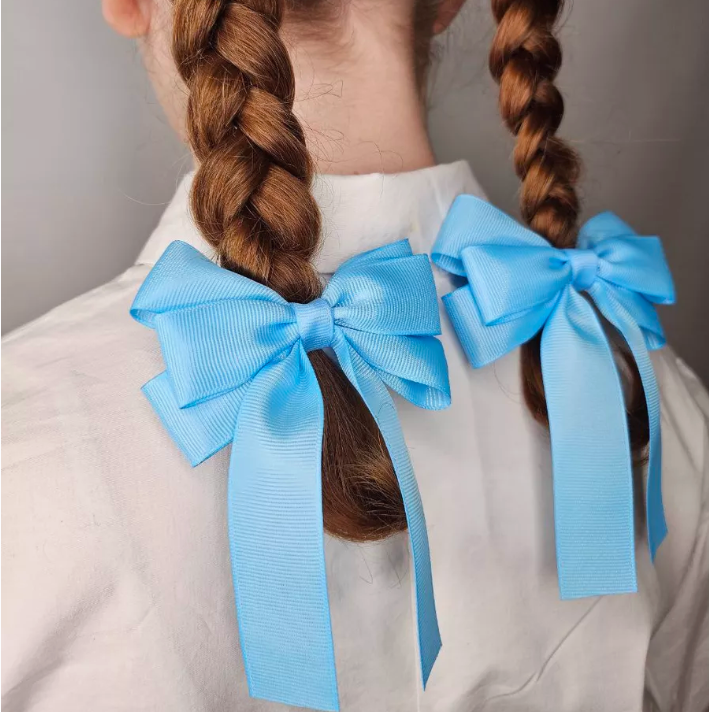 2'li Set Mavi Kurdele Lastikli Fiyonk Toka, Lastikli Tokalar, Okul Tokaları, Çocuk Tokaları