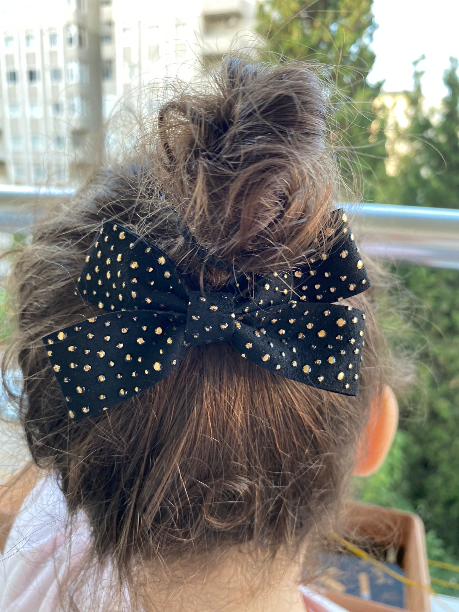 İlk toka, siyah üzerine gold puantiye detaylarıyla hem