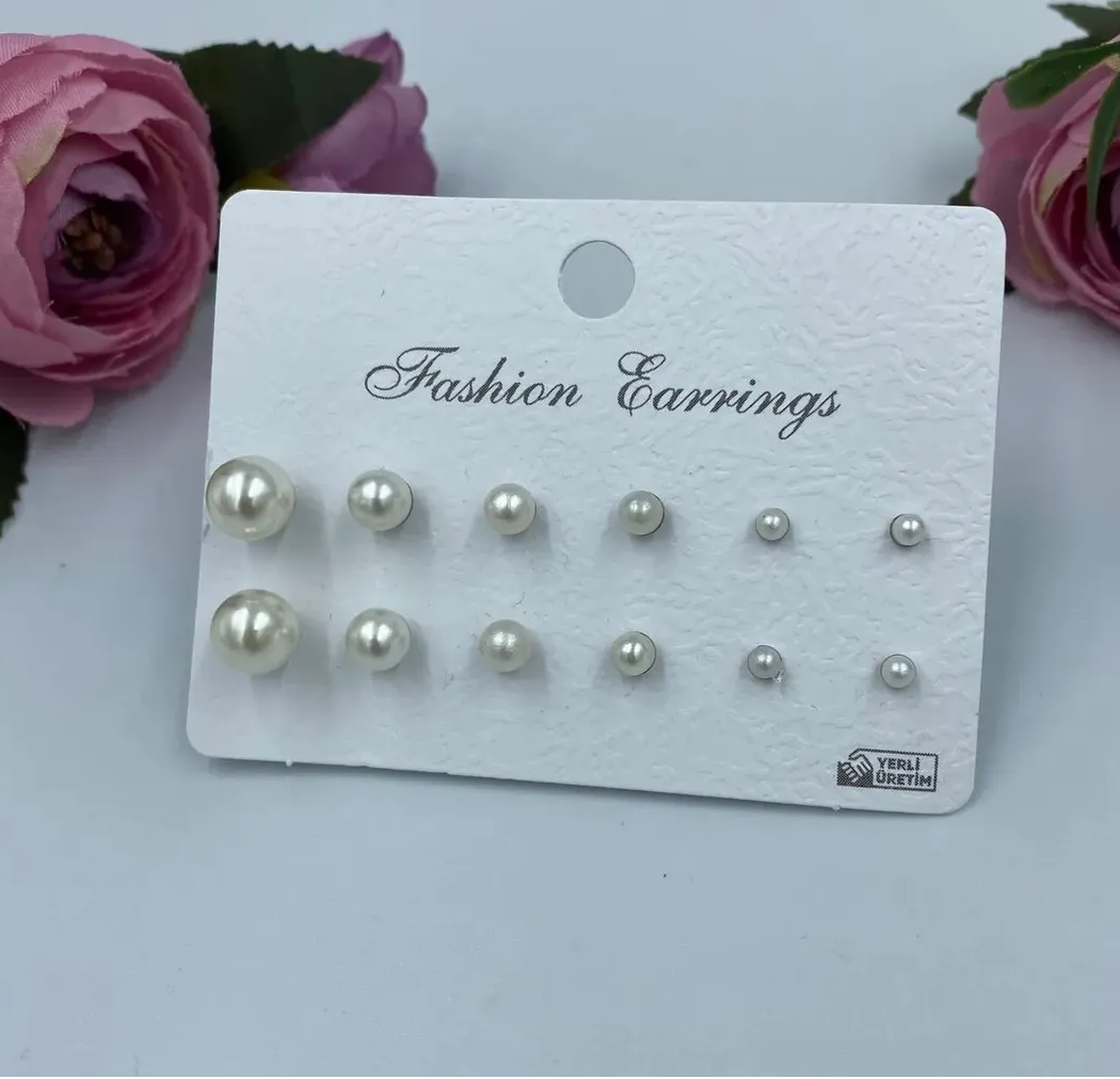 6 Çift Inci Top Küpe Seti, Inci Küpe, Klasik Inci Küpe Takımı (12 ADET)