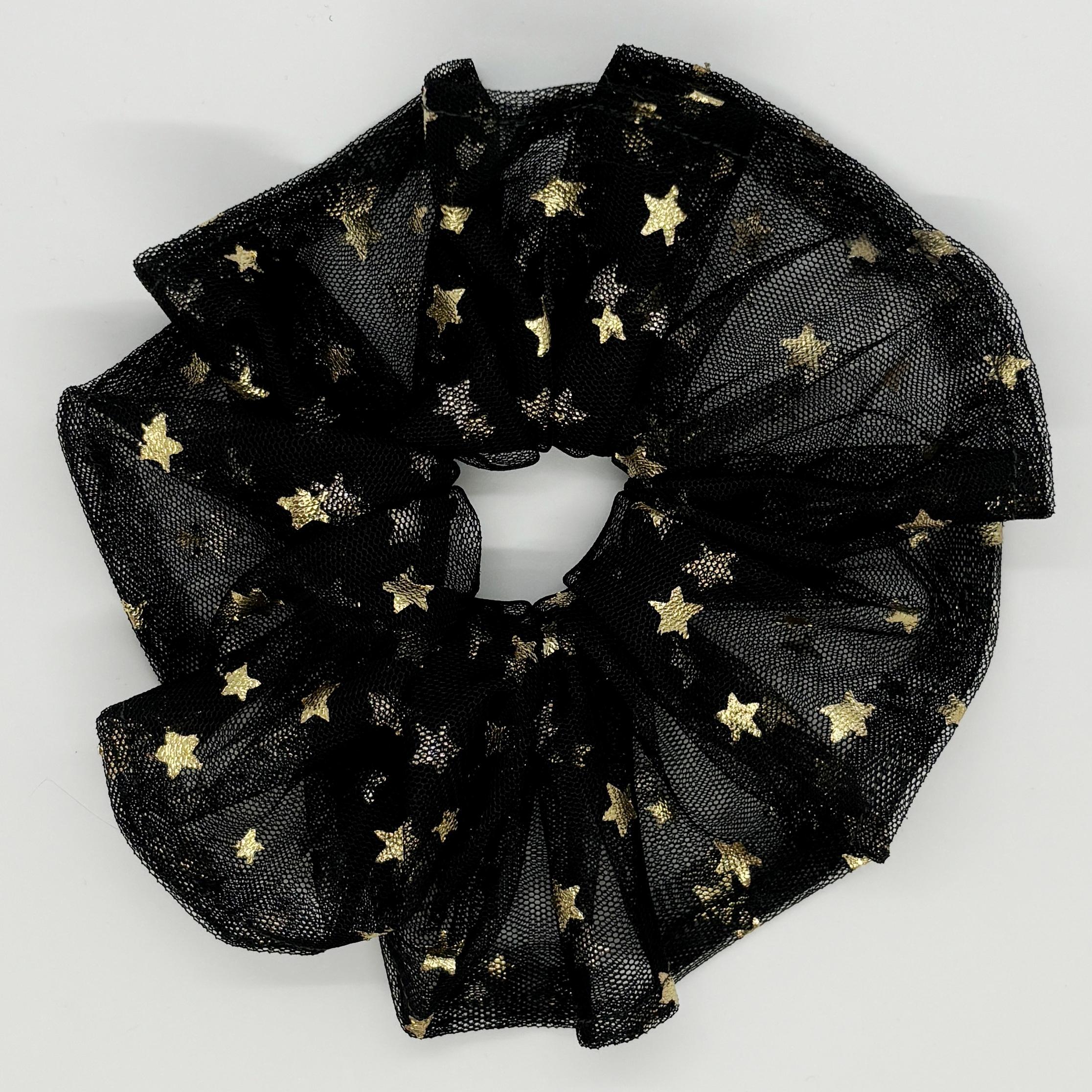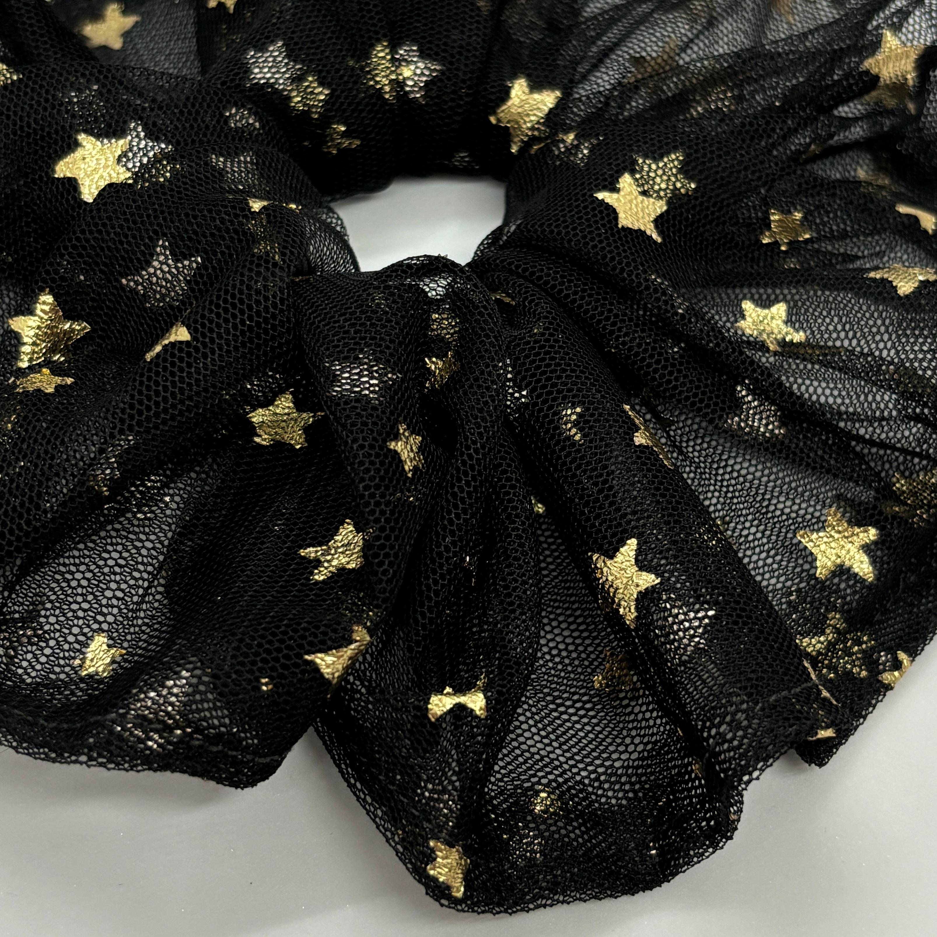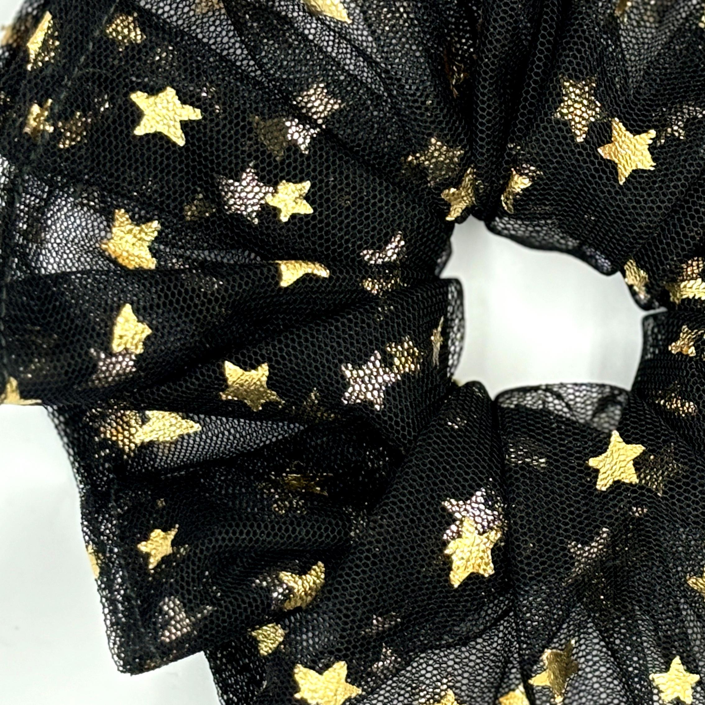 Altın Yıldızlı Siyah Tül Saç Tokası - Zarif Topuz Tokası