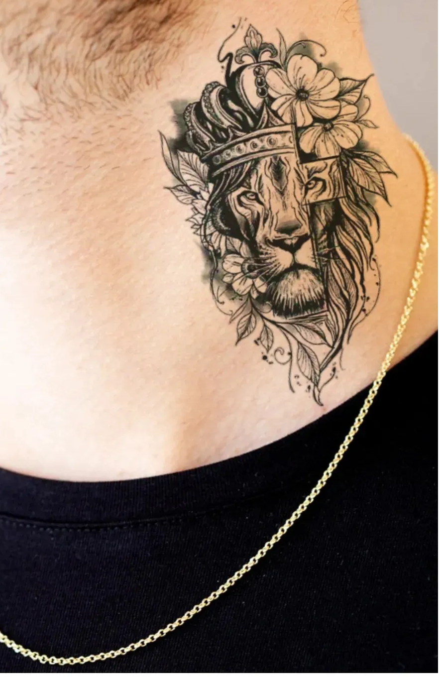 Aslan Kral Göğüs Arası, Bilek, Kol, Bacak Geçici Dövme, Tattoo, sadece bir dövme değil, aynı zamanda bedeninizi süsleyerek dış dünyaya nasıl bir ruha sahip olduğunuzu gösterir.