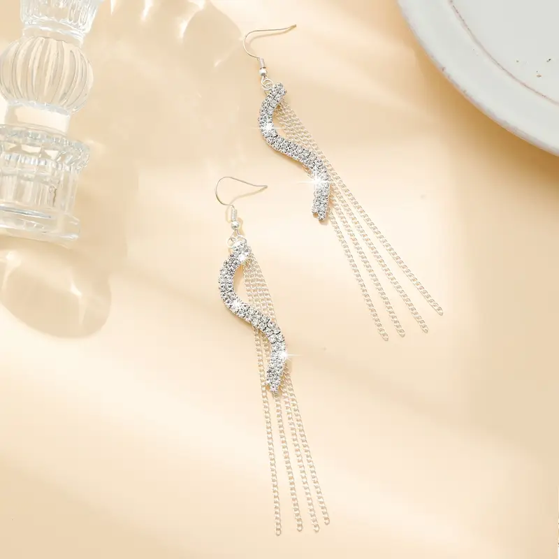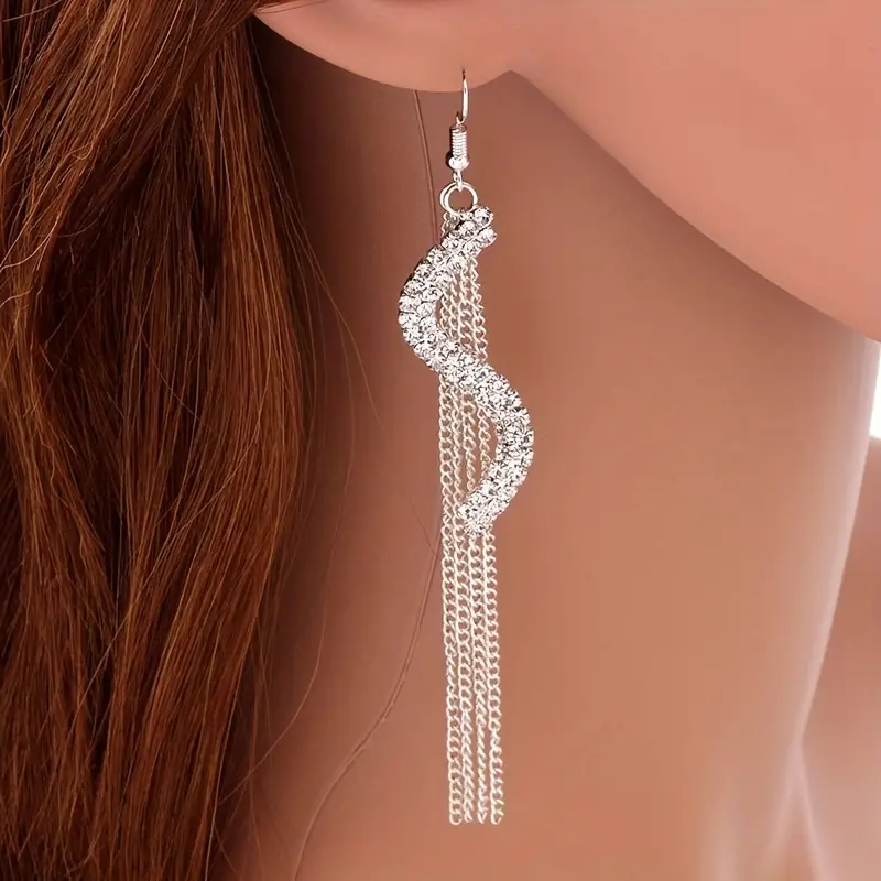 Dangle Küpe Taşlı Püskül S Şekilli Tasarım Zarif Küpe