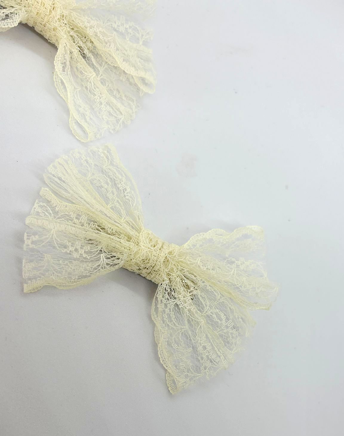 Dantel Serisi - Krem Klipsli Çocuk Fiyonk Toka, 2 Li Set, Dantel Toka, Çocuk Tokaları