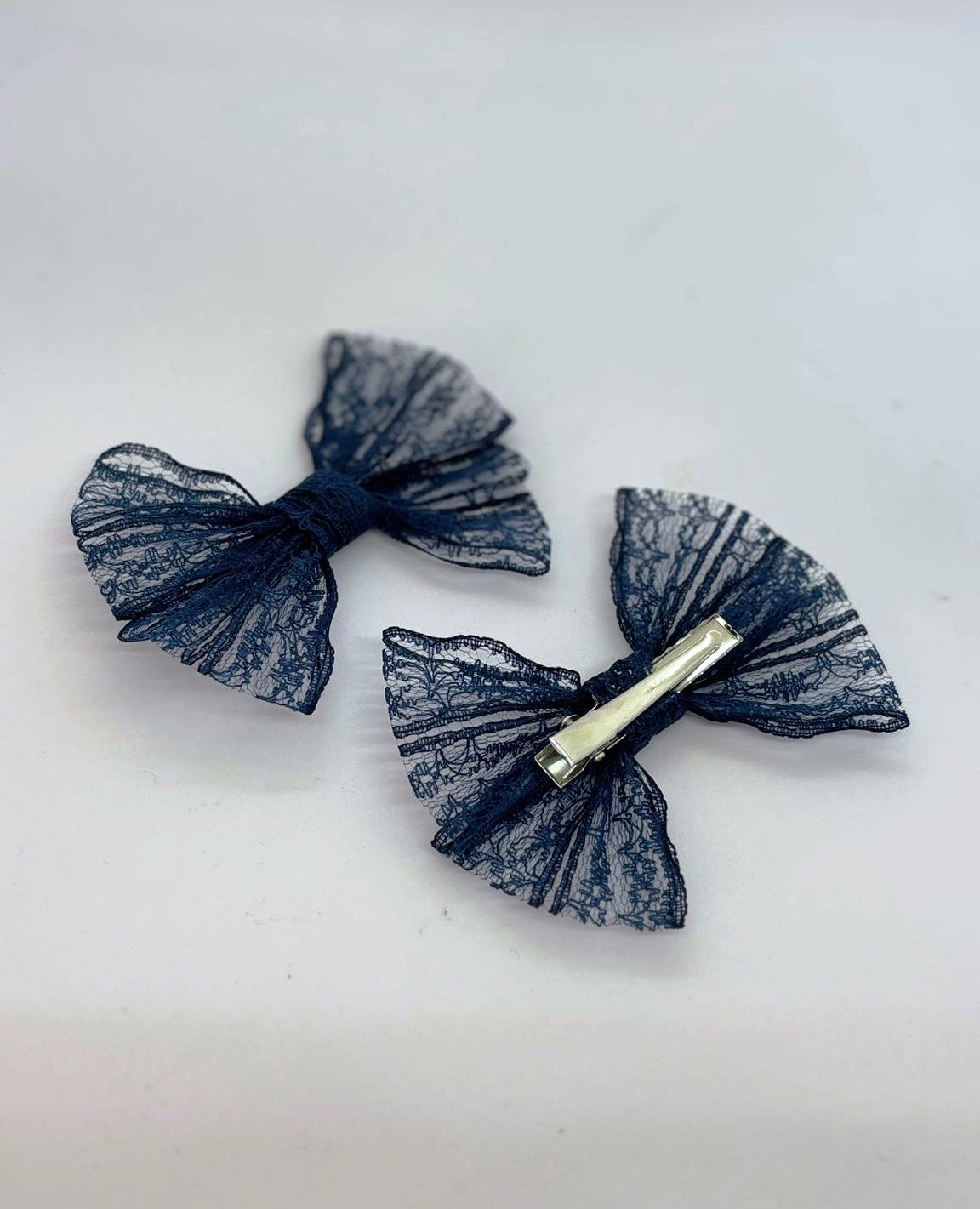 Dantel Serisi - Lacivert Klipsli Çocuk Fiyonk Toka, 2 Li Set, Dantel Toka, Çocuk Tokaları