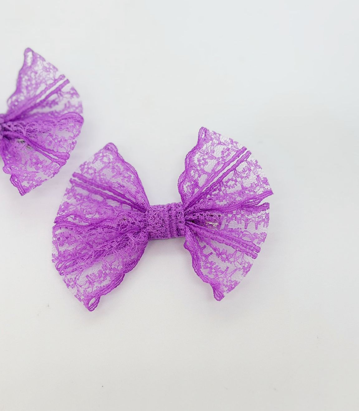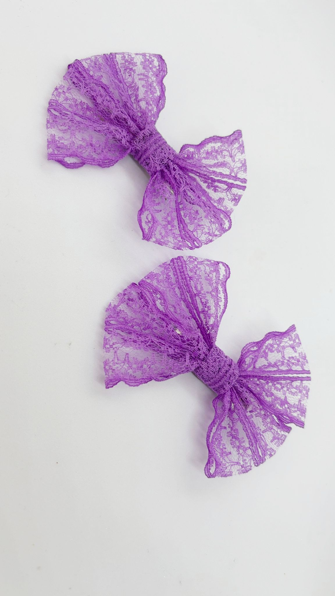 Dantel Serisi - Lila Klipsli Çocuk Fiyonk Toka, 2 Li Set, Dantel Toka, Çocuk Tokaları