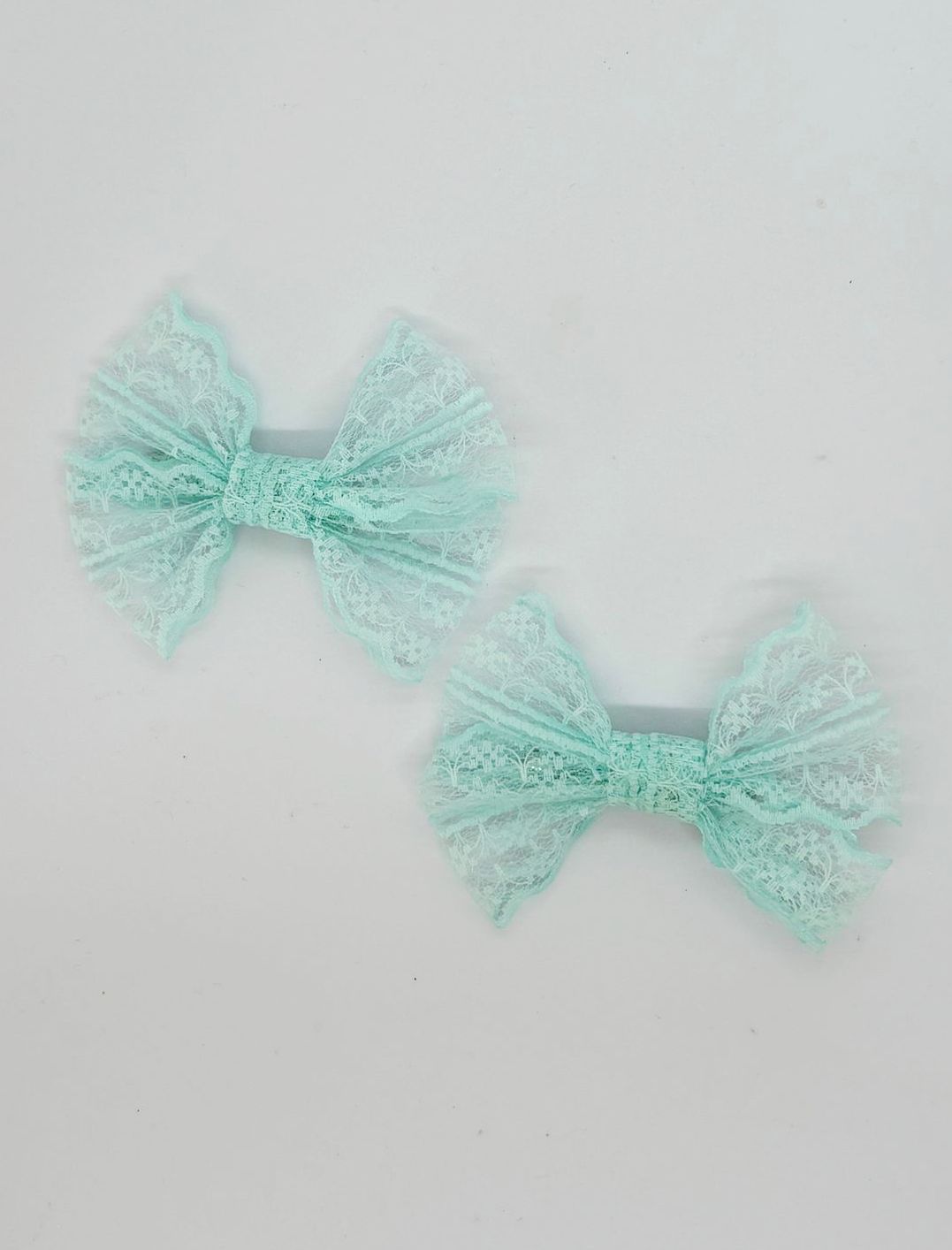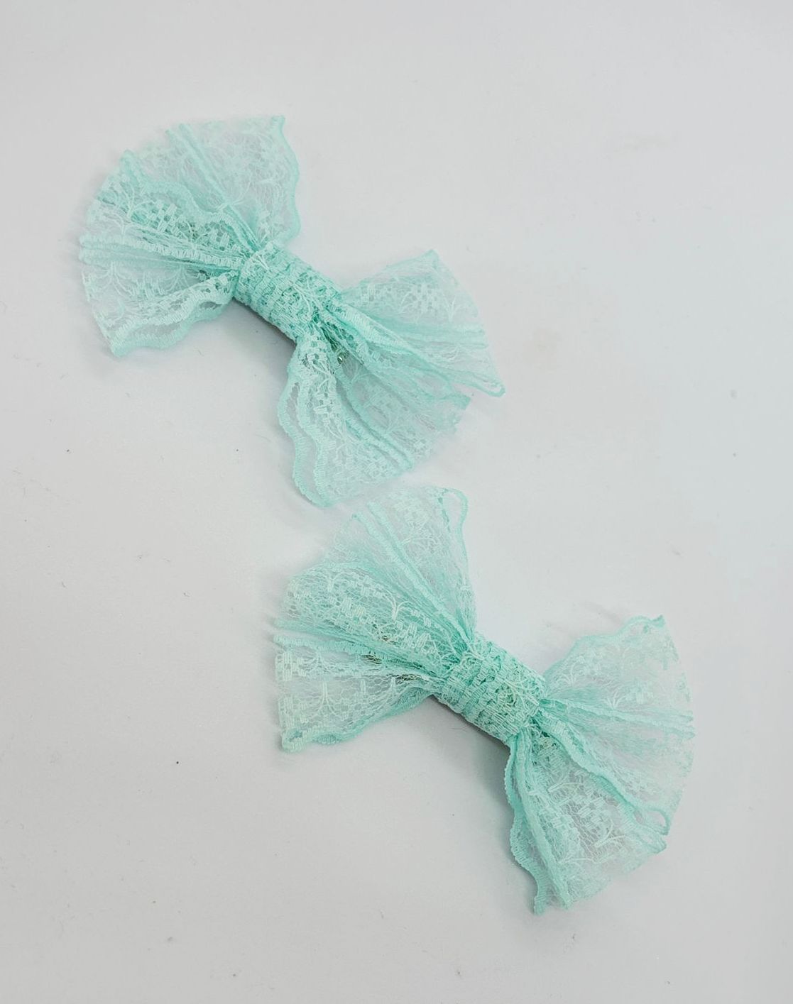 Dantel Serisi - Mint Yeşili Klipsli Çocuk Fiyonk Toka, 2 Li Set, Dantel Toka, Çocuk Tokaları