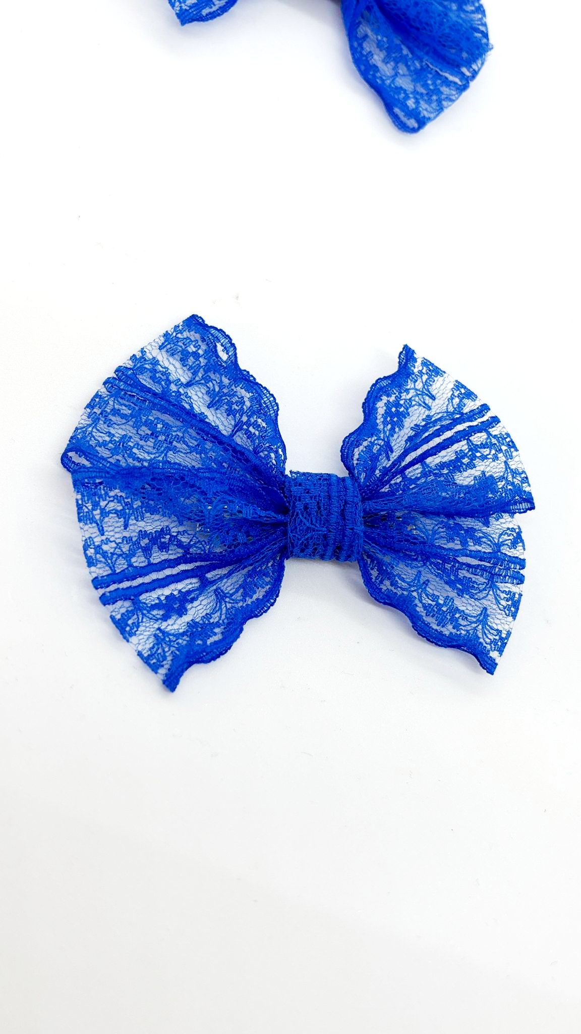 Dantel Serisi - Saks Mavisi Klipsli Çocuk Fiyonk Toka, 2 Li Set, Dantel Toka, Çocuk Tokaları