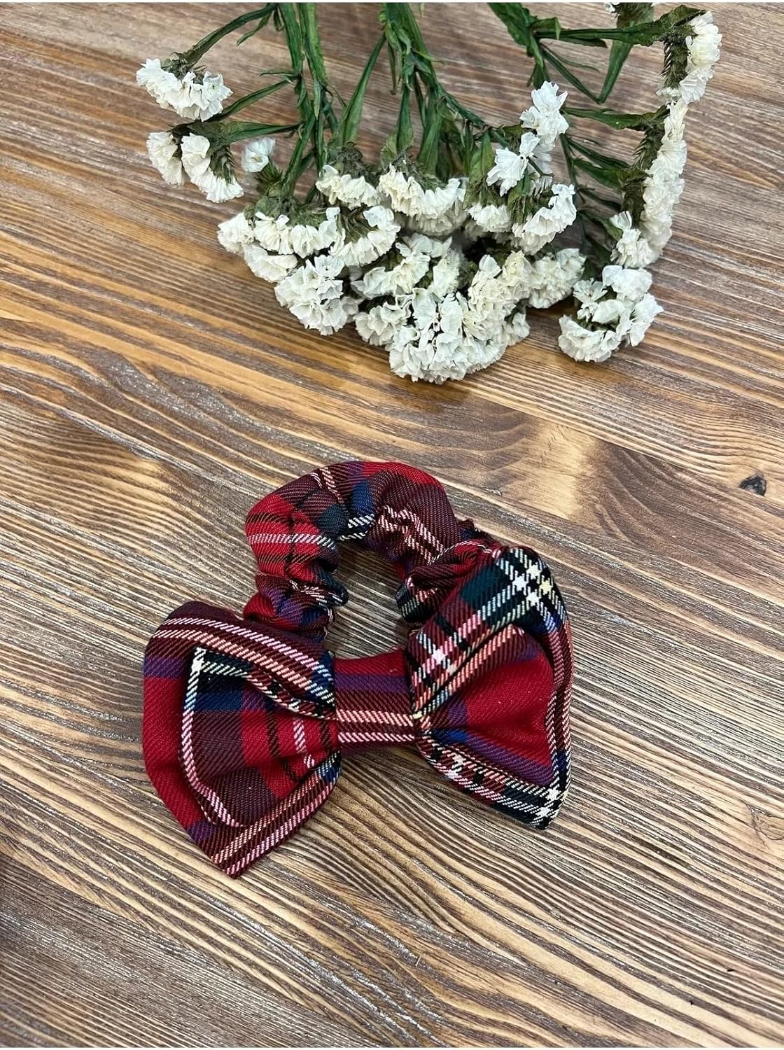 Ekose Desenli Fiyonk Fular Lastikli Saç Tokası