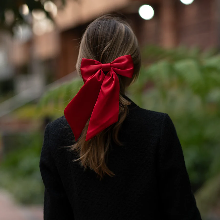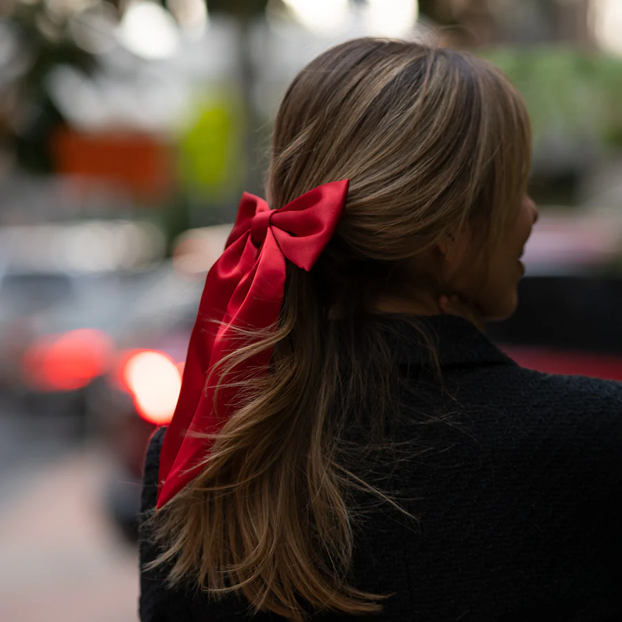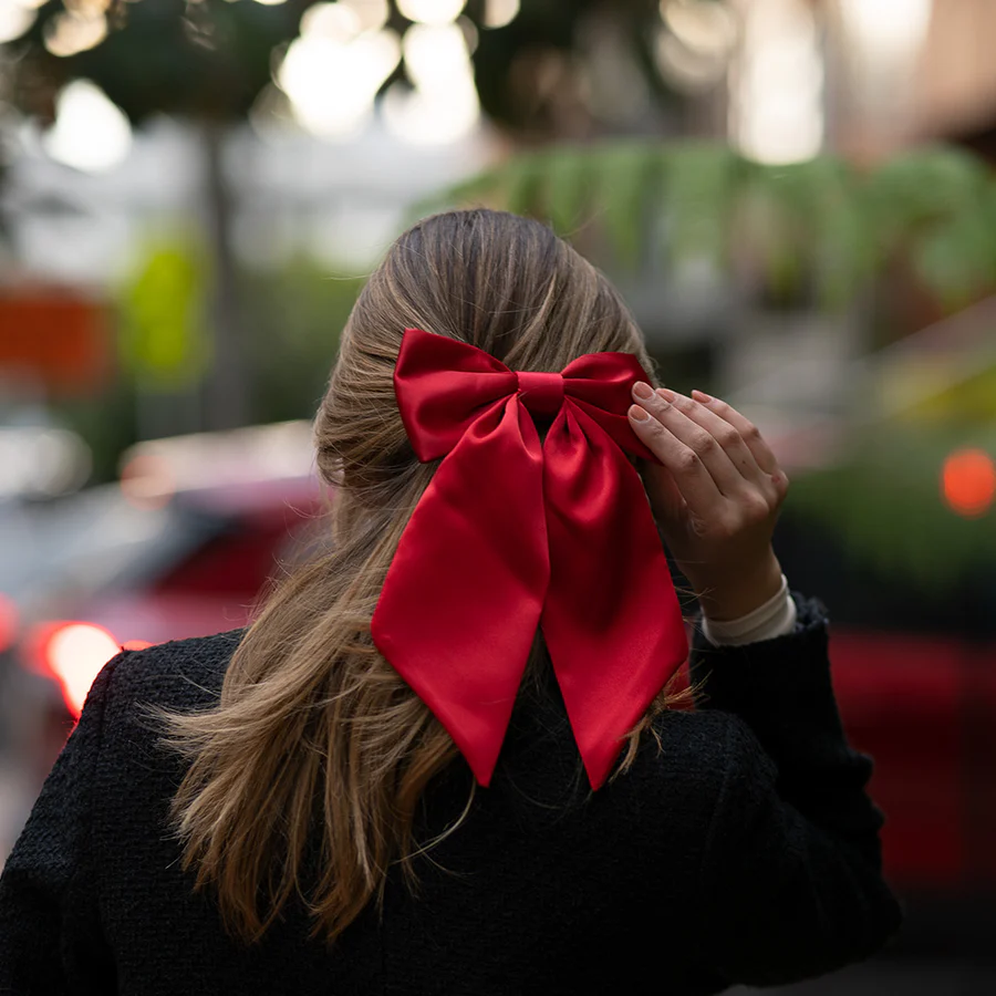 Ekstra Büyük Kırmızı Saten Lüx Fiyonk Toka - Otomatik Klipsli - Handmade