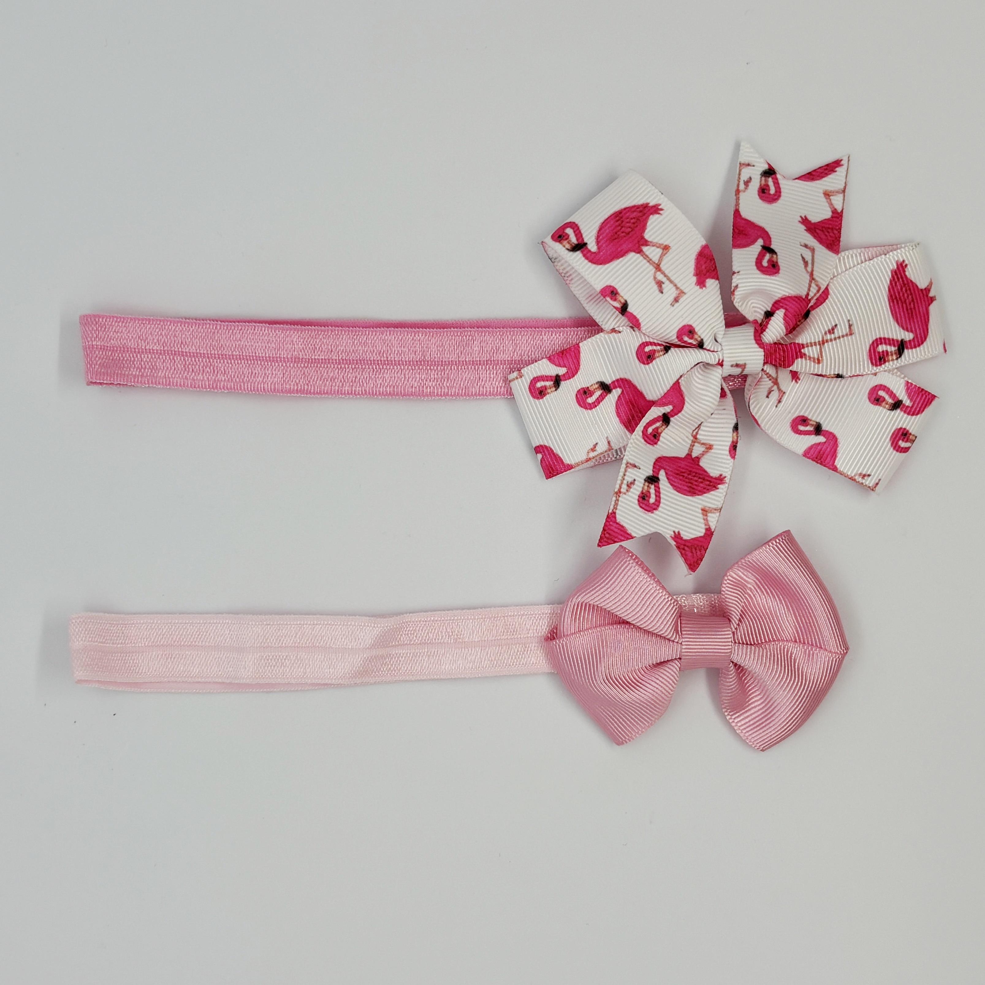 Flamingo Desenli ve Pembe Düz Bandana Seti - El Yapımı 6 Ay - 4 Yaş