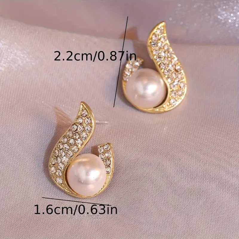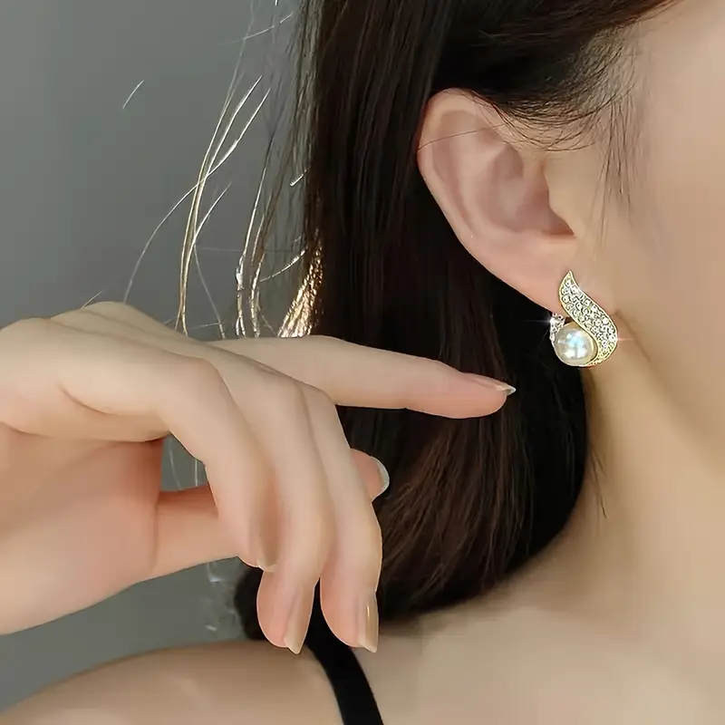 Fransız Tarzı İnci ve Zirkon Taşlı Zarif Gold Kadın Küpe