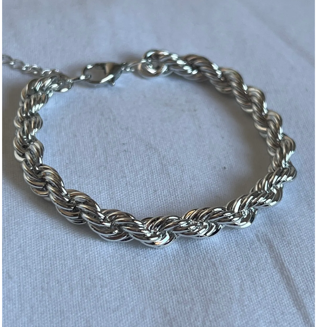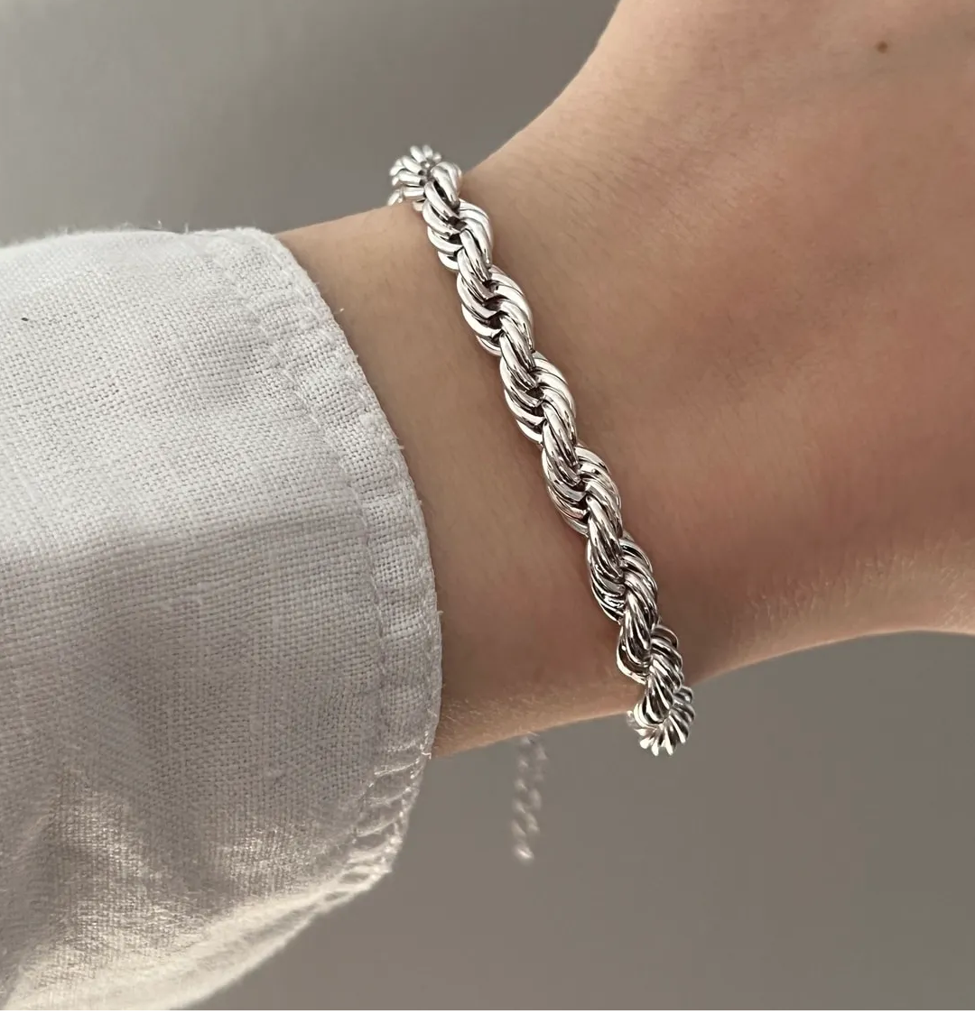 Gümüş Kaplama Kalın Çelik Burgu Bilekli