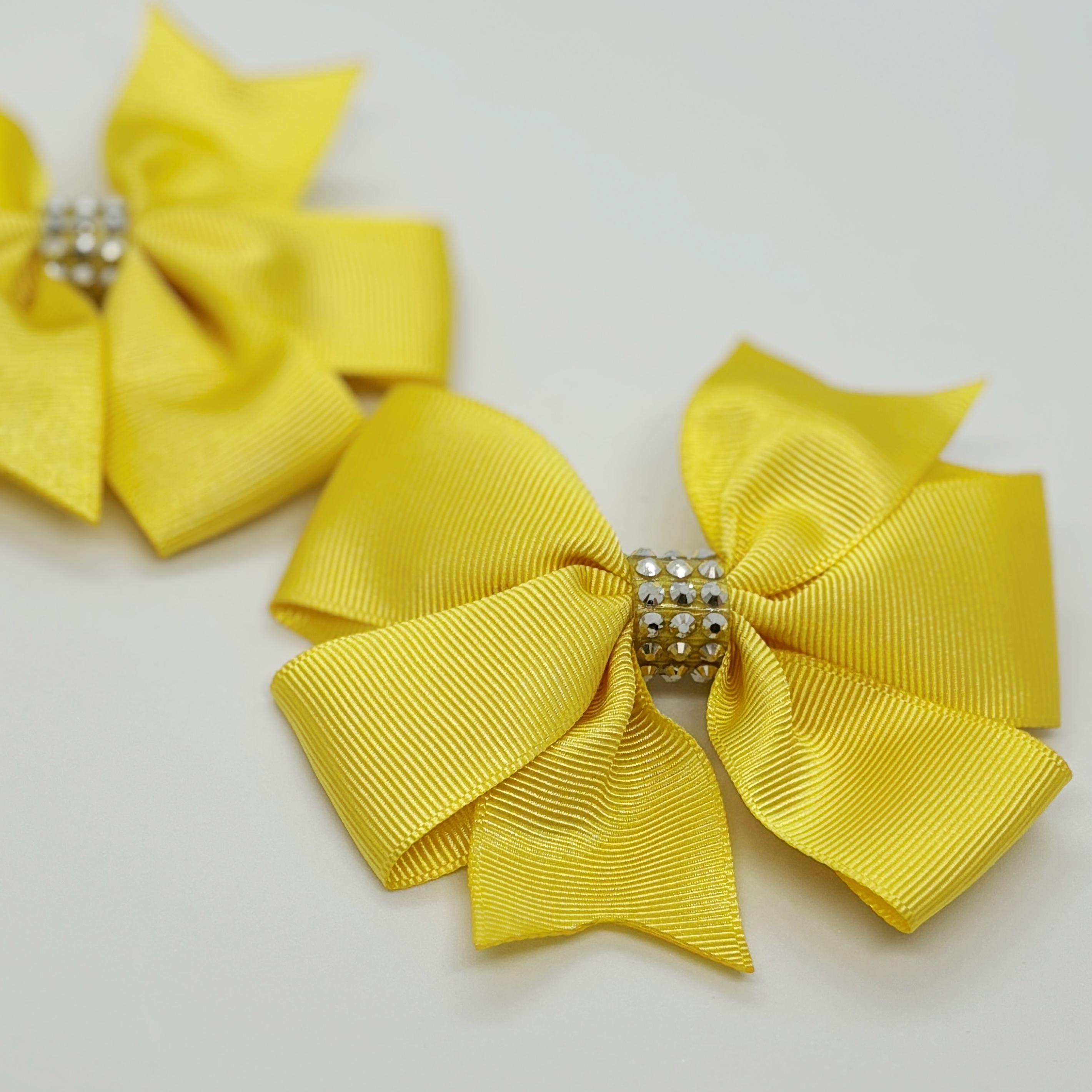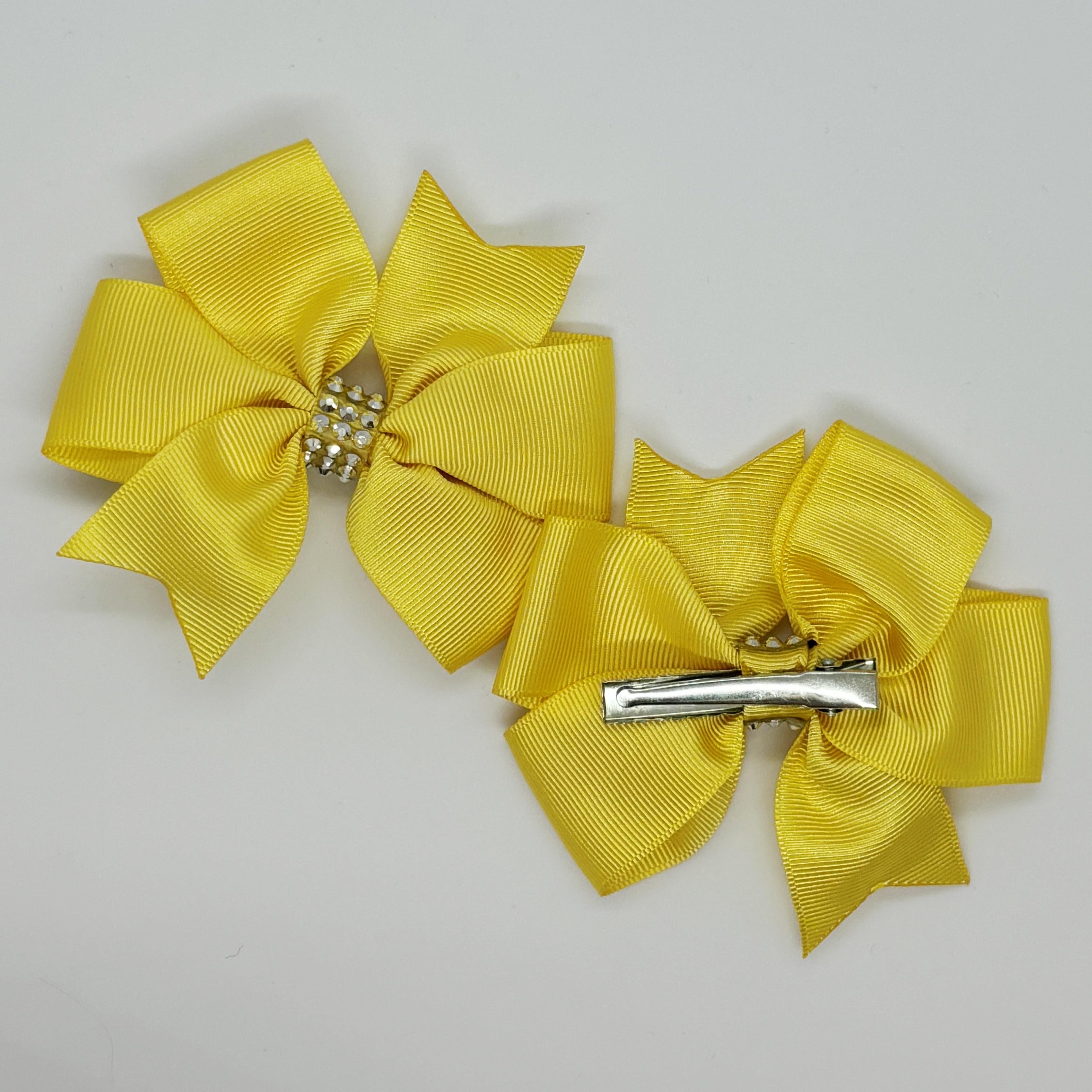 Güneş Sarısı Taş Detaylı Klipsli Saten Kurdele Bebek ve Çocuk Tokası - 2 Adet