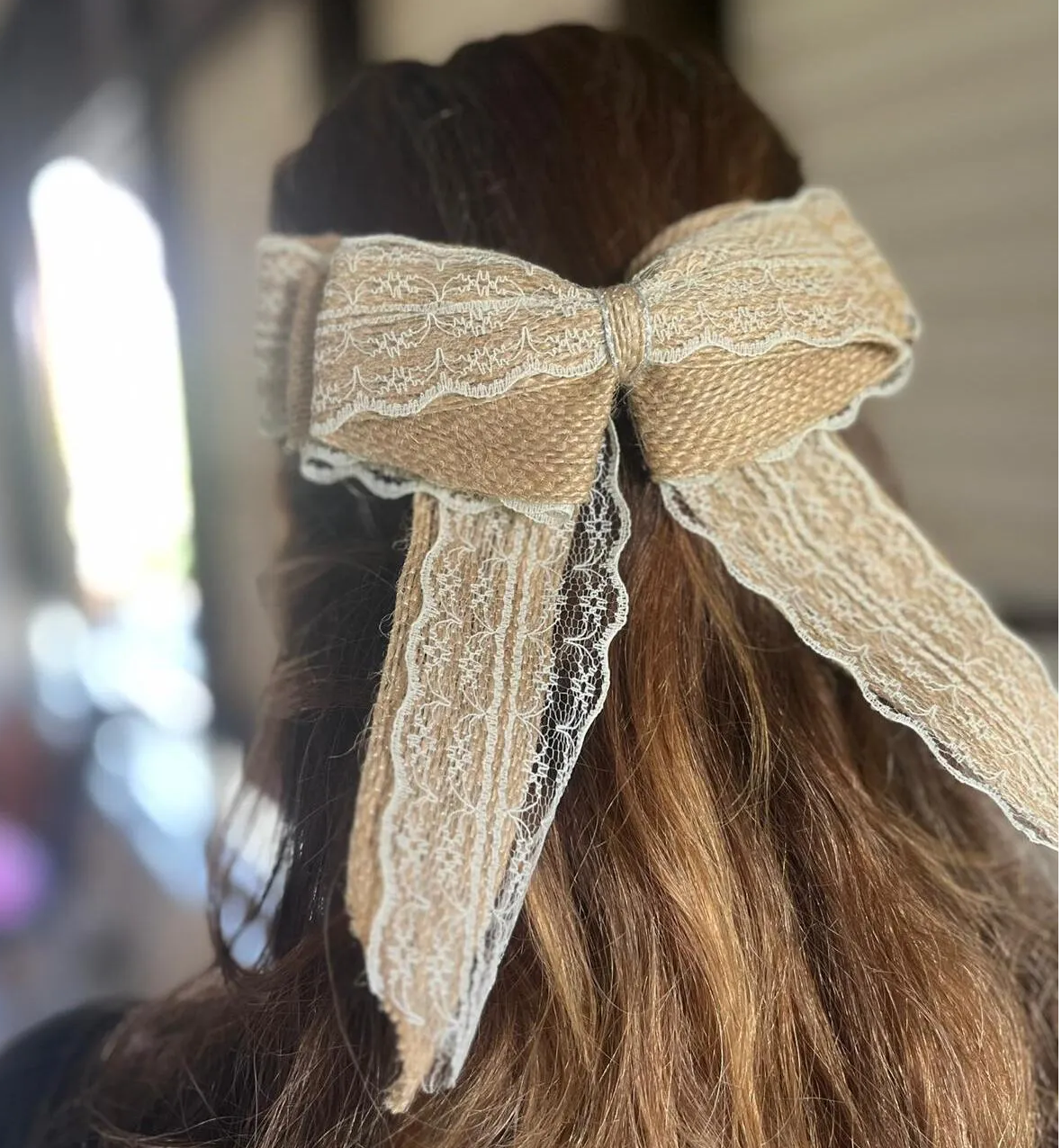Jüt Dantelli Hasır El Yapımı Büyük Boy Lüx Otomatik Toka, Kadın Toka