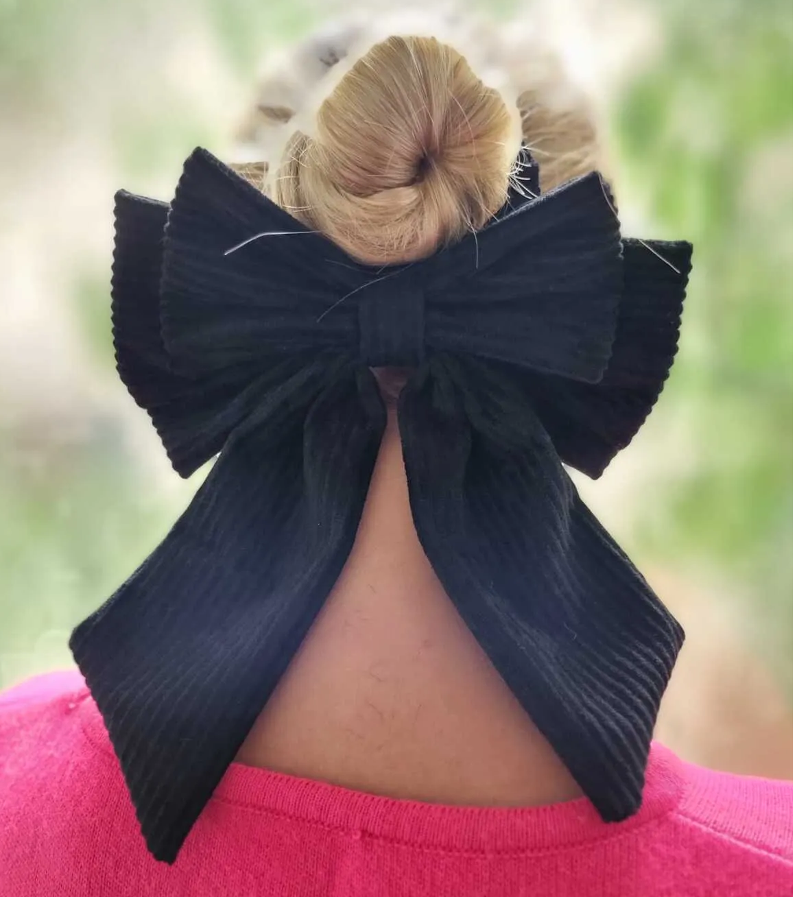 Kadife Siyah Büyük Boy Fiyonk Bağlama Toka, At Kuyruğu Tokası, Topuz Tokası