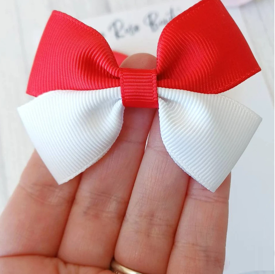 Kırmızı Beyaz Çift Renkli Klipsli Çocuk Tokası - Okul Tokaları, 2 Adet, Saç Fiyonkları