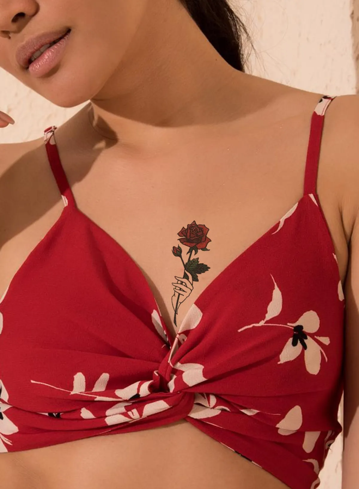 Geçici dövme modelleri arasında dikkat çeken bu şık gül deseni, hem günlük yaşamda hem de özel etkinliklerde harika bir aksesuardır. Tarzınıza zarif ve renkli bir dokunuş katacak bu dövme, her türlü kıyafetle uyum sağlar ve dikkatleri üzerinize çeker. Romantik ve sofistike bir görünüm için mükemmel bir tercih.