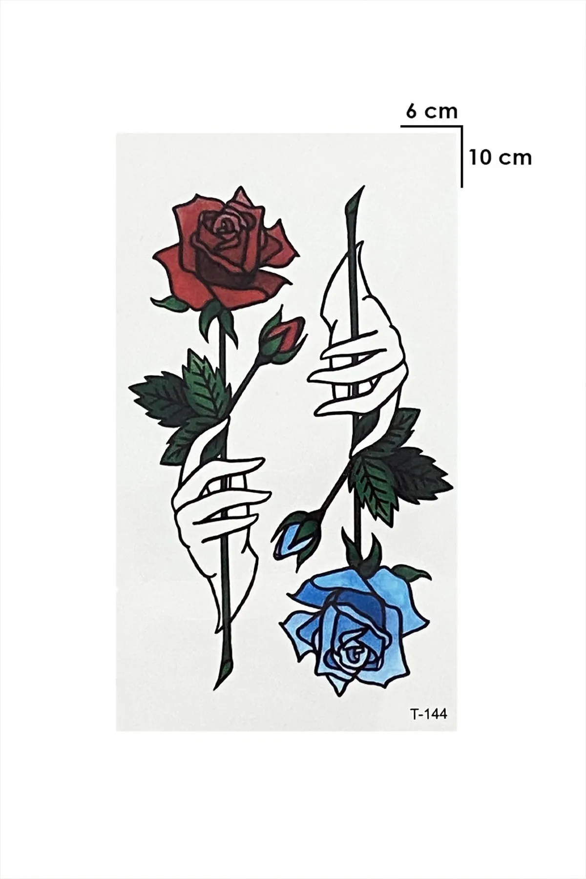 Kırmızı Gül ve Mavi Gül Dövmesi Ense, Göğüs, Bilek, Kol, Bacak, Boyun, Sırt Geçici Dövme, Tattoo