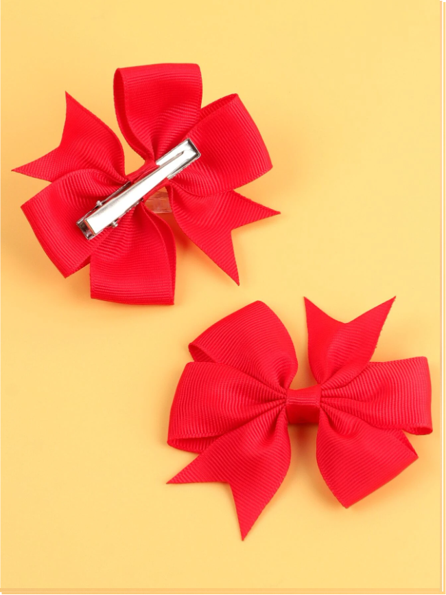 Kırmızı Kurdele Klipsli Çocuk ve Bebek Tokası 2 'Li Set