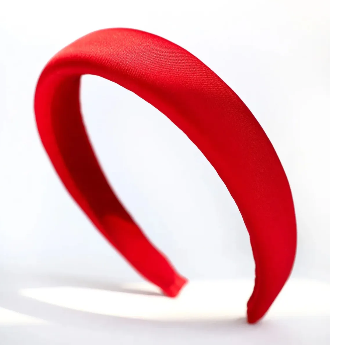 Kırmızı saten bombeli kalın taç, stilinize enerji ve