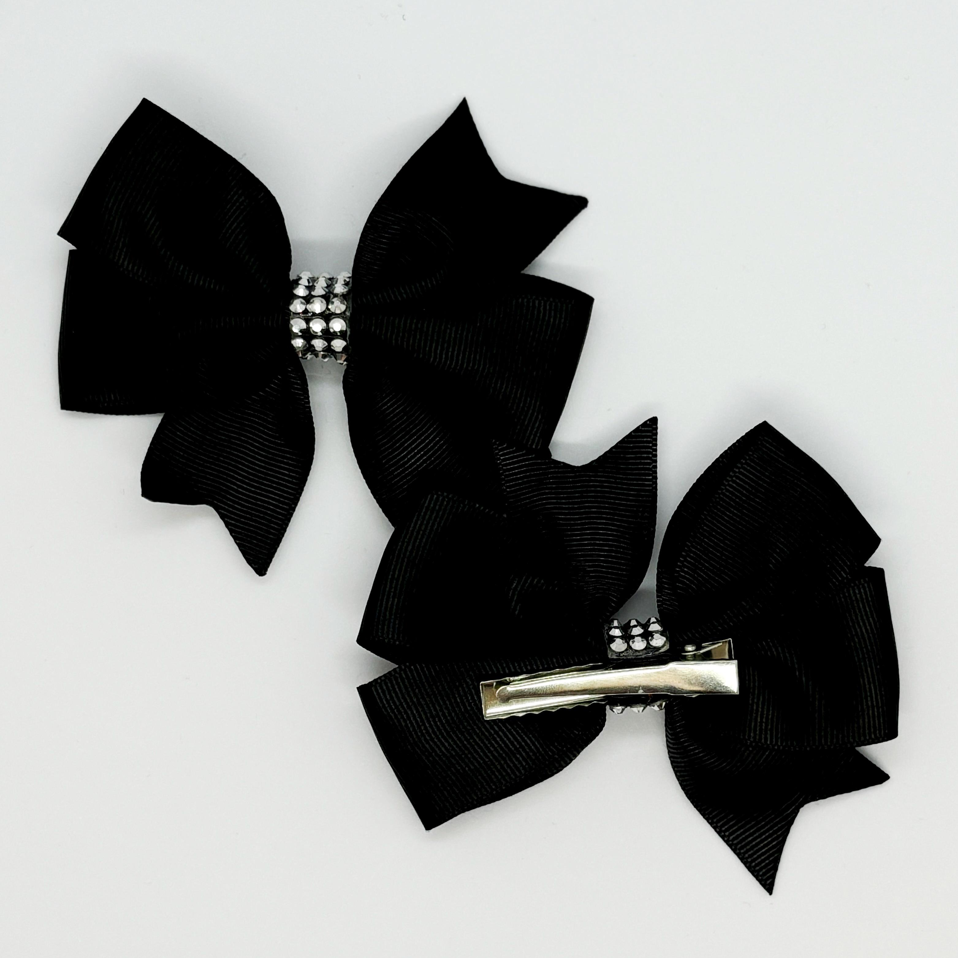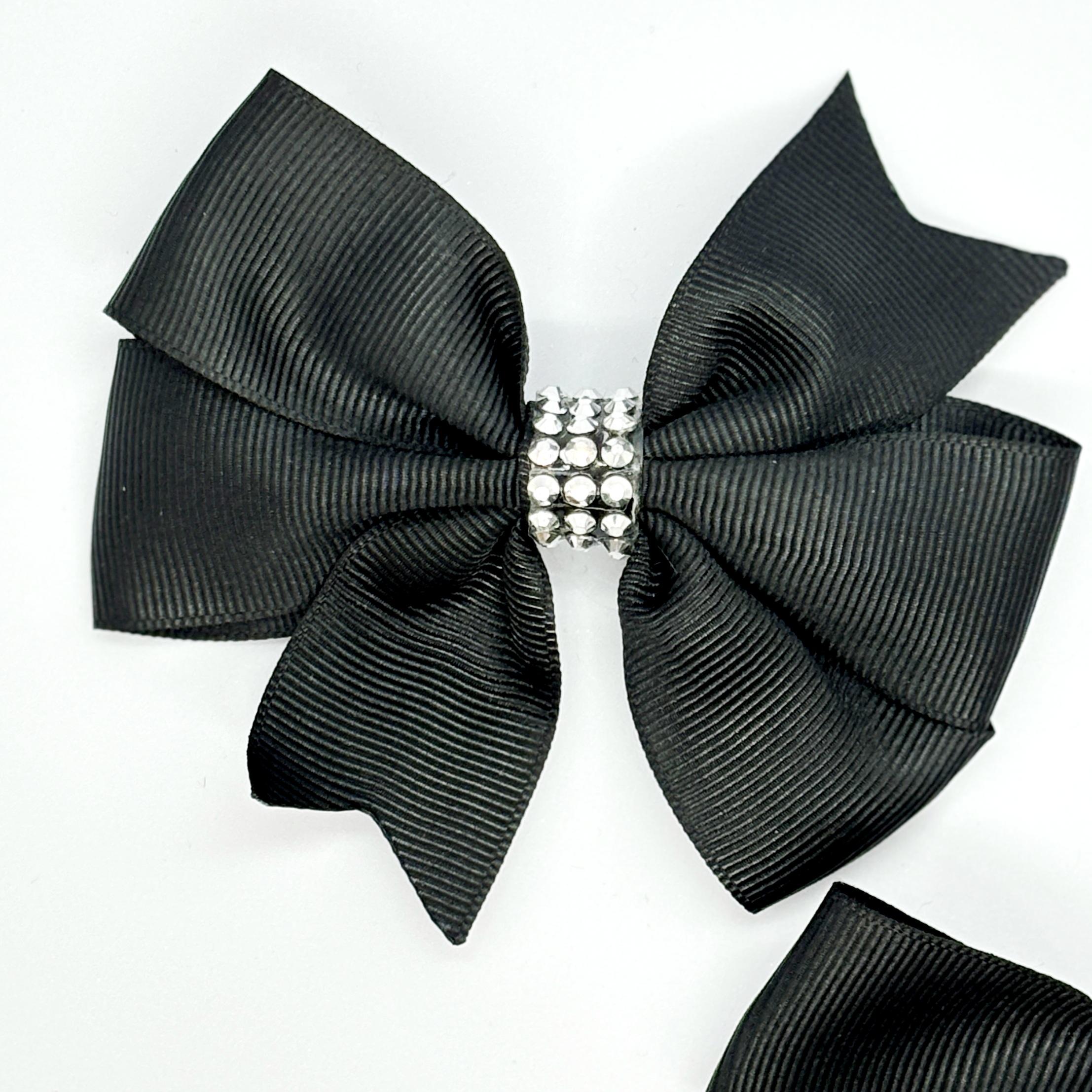 Kömür Siyahı Taş Detaylı Klipsli Saten Kurdele Bebek ve Çocuk Tokası - 2 Adet