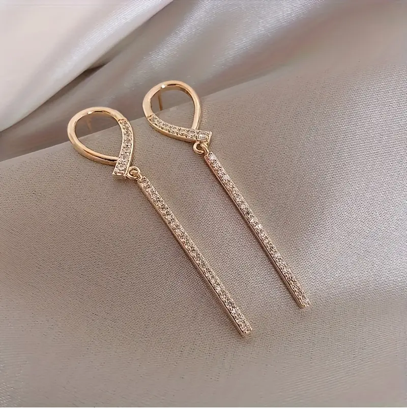 Kore Tarzı Lüks Zirkon Taşlı Uzun Sallantılı Küpe