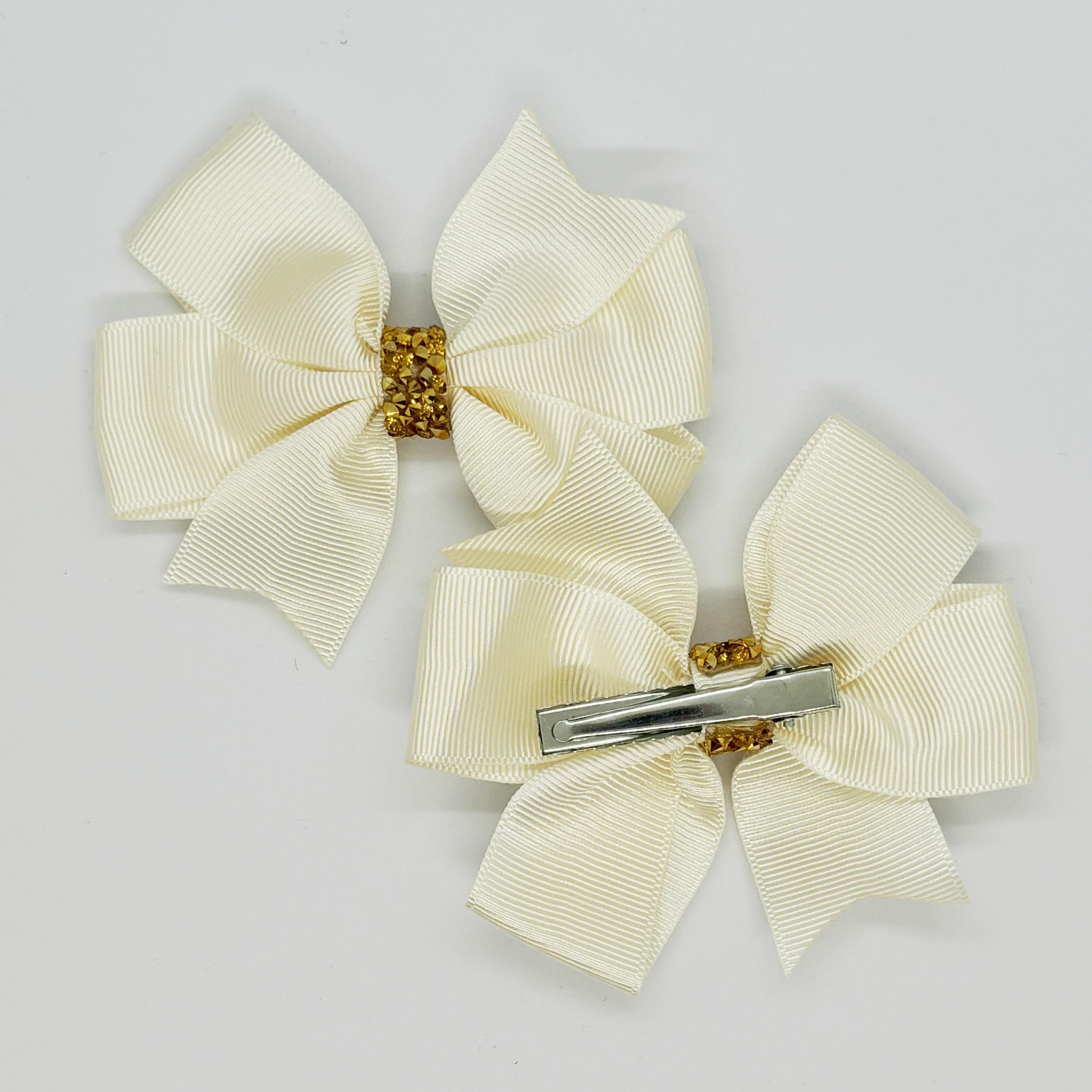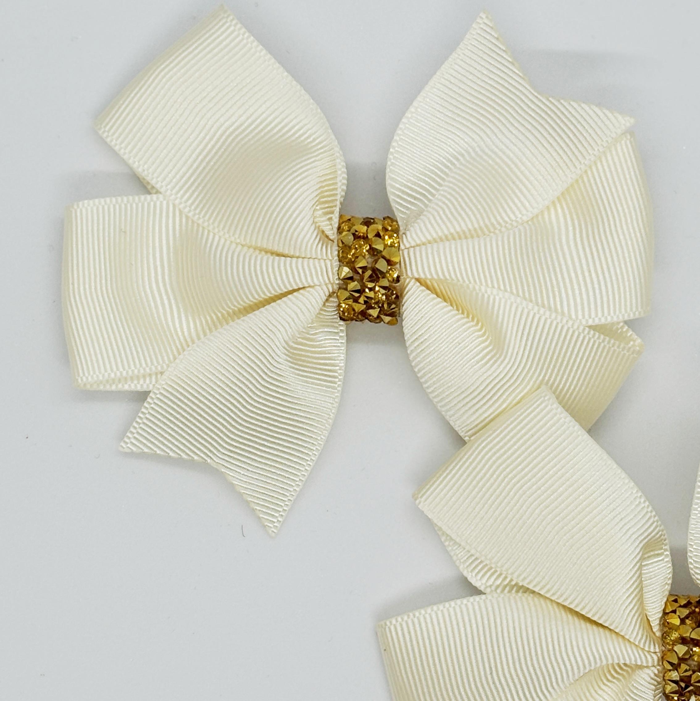 Krem Gold Taş Detaylı Klipsli Saten Kurdele Bebek ve Çocuk Tokası - 2 Adet