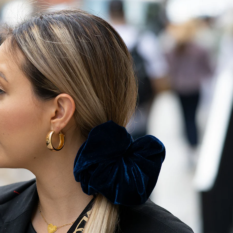 Lacivert Büyük Boy Kadife Siyah El Yapımı Simit Toka - XXL Scrunchies