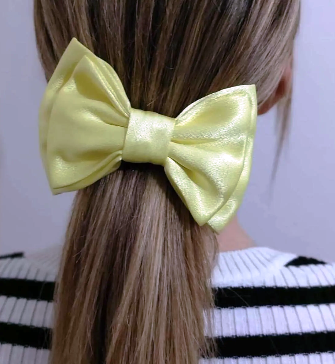 Limon Sarısı Saten Lüx Kadın Fiyonk Toka, büyük boy