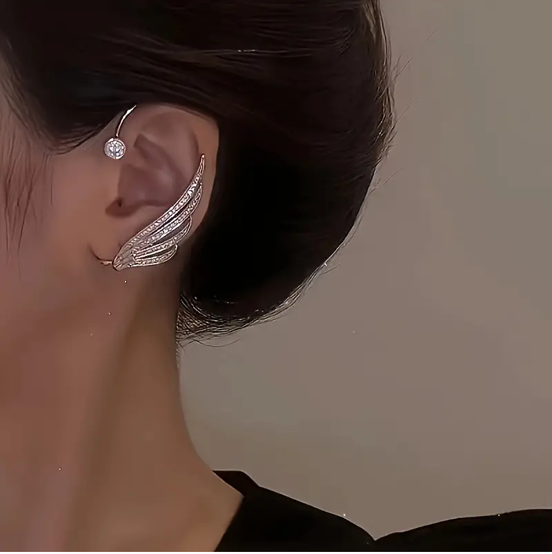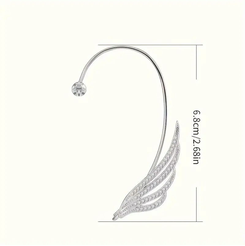 Melek Kanadı Ayarlanabilir Gümüş Renk Şık Taşlı Küpe - Sağ Kulak - 1 Adet
