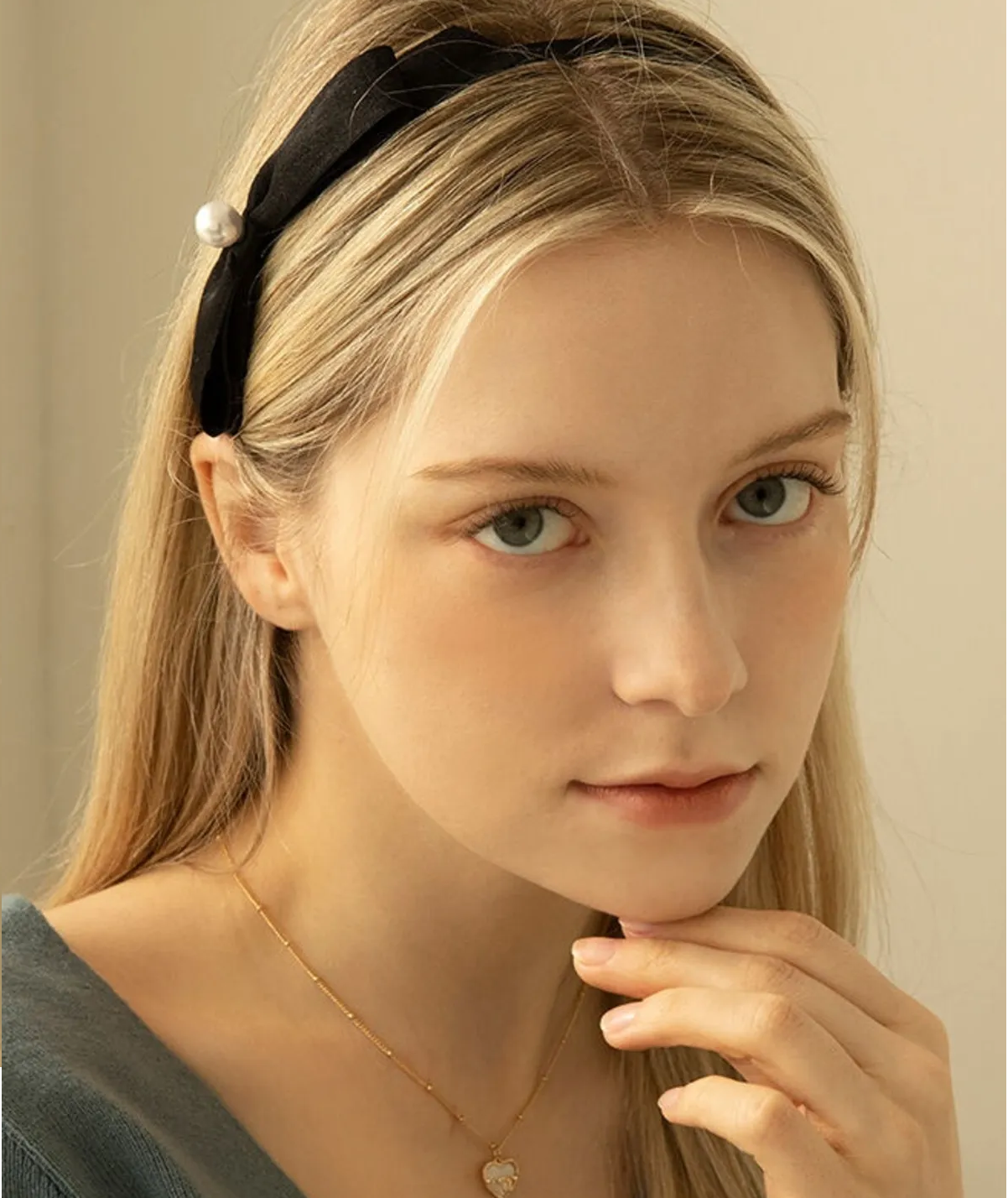 Minimalist Saten Fiyonk ve İnci Detaylı Taç