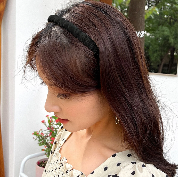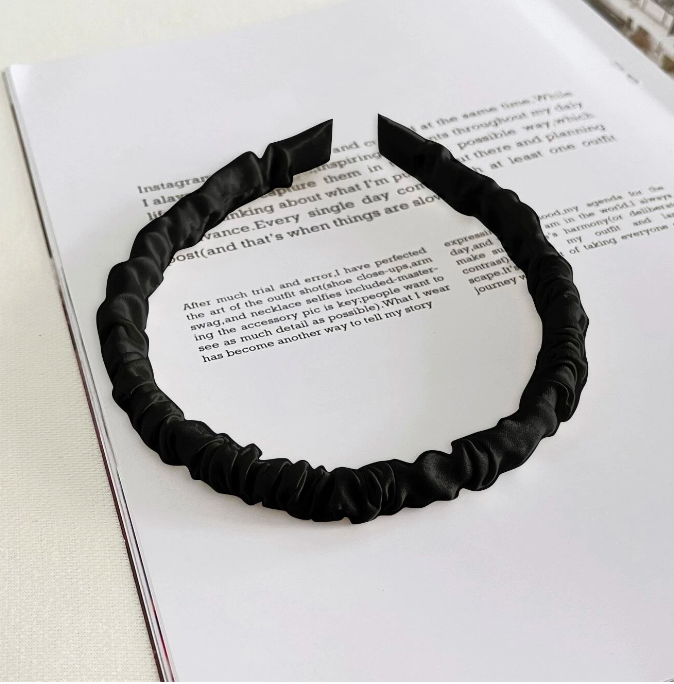 Minimalist Siyah Büzgülü Saten Taç