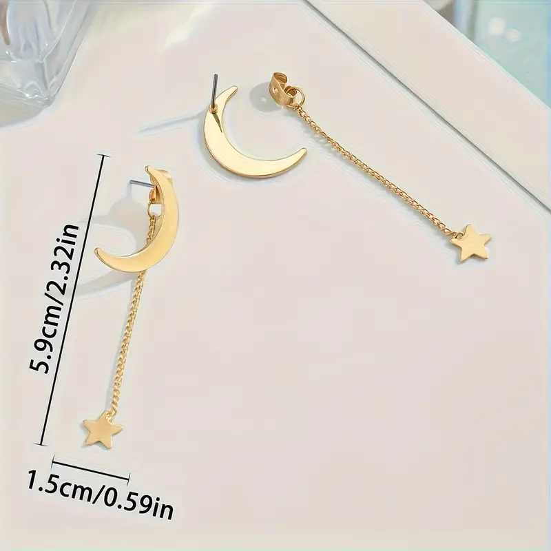 Minimalist Tasarım Şık Püskül Yıldız & Ay Damlası Küpeler - 1 Çift