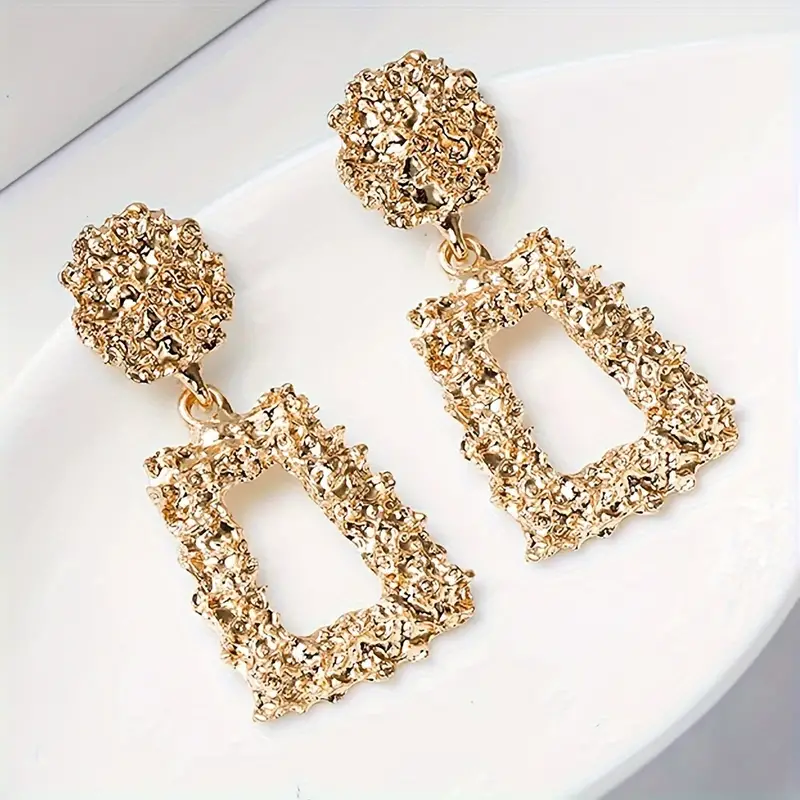 Nostaljik Gold Uzun Küpe, Geometri Tasarım Kadın Küpe