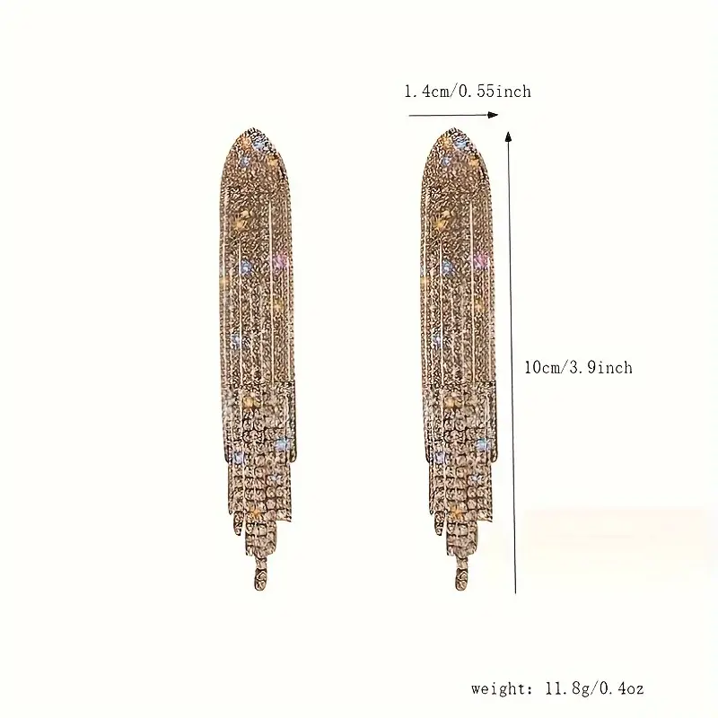 Püskül Tasarım Parlak Taşlı Gold Şık Sallantılı Gösterişli Uzun Küpe