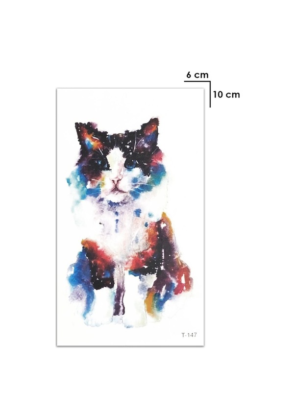 Renkli Kedi Dövmesi Ense, Göğüs, Bilek, Kol, Bacak, Boyun, Sırt Geçici Dövme, Tattoo