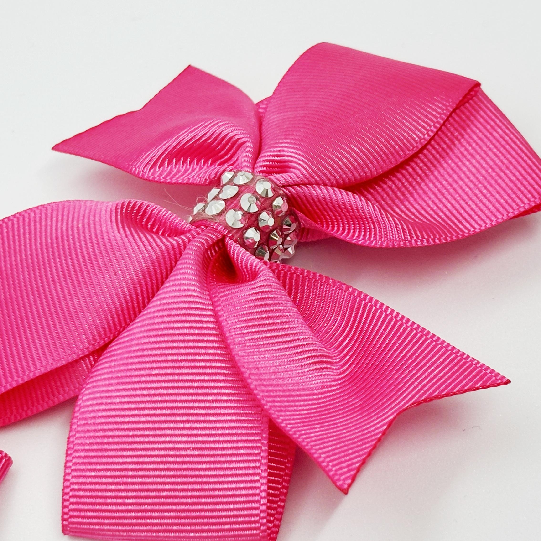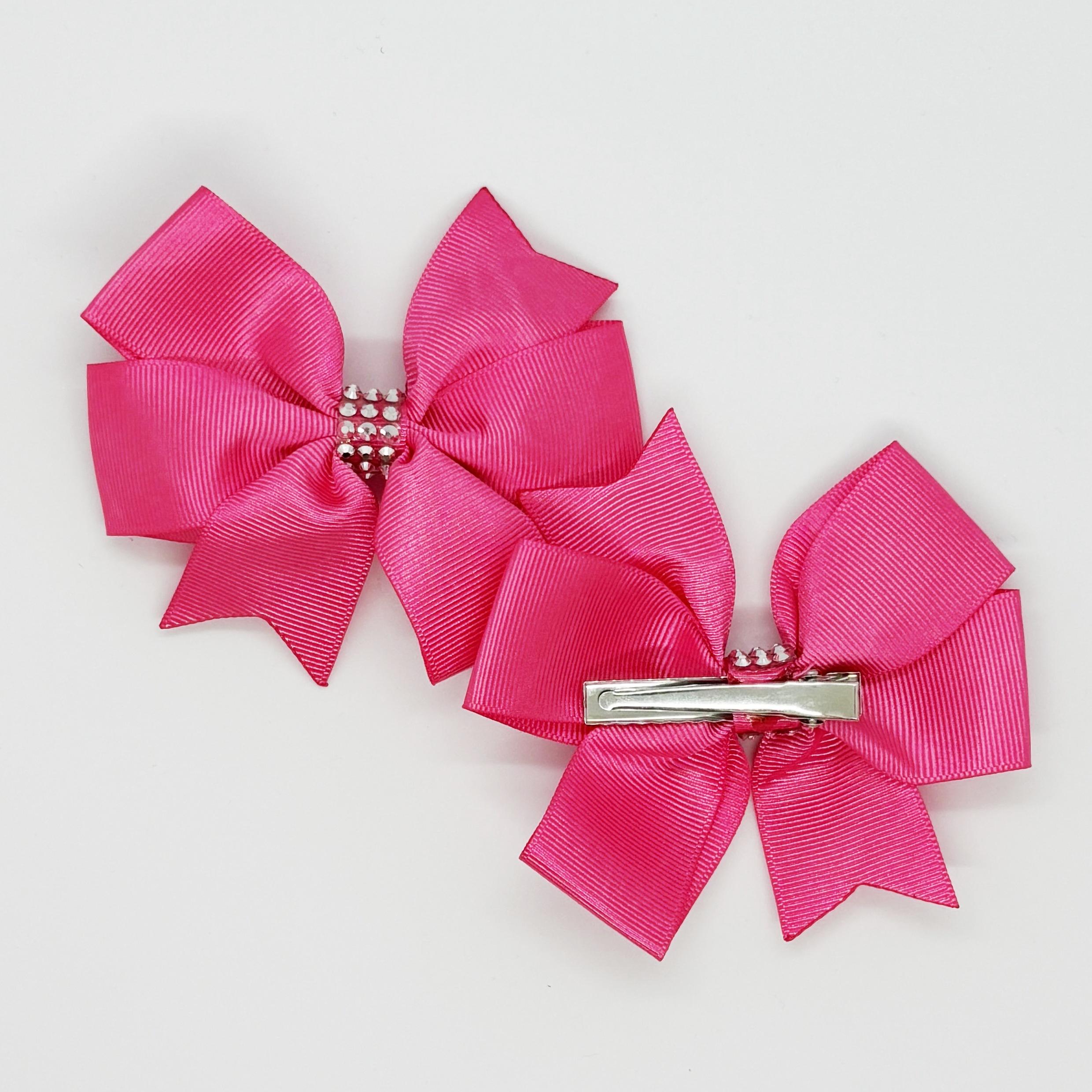 Şeker Pembesi Taş Detaylı Klipsli Saten Kurdele Bebek ve Çocuk Tokası - 2 Adet