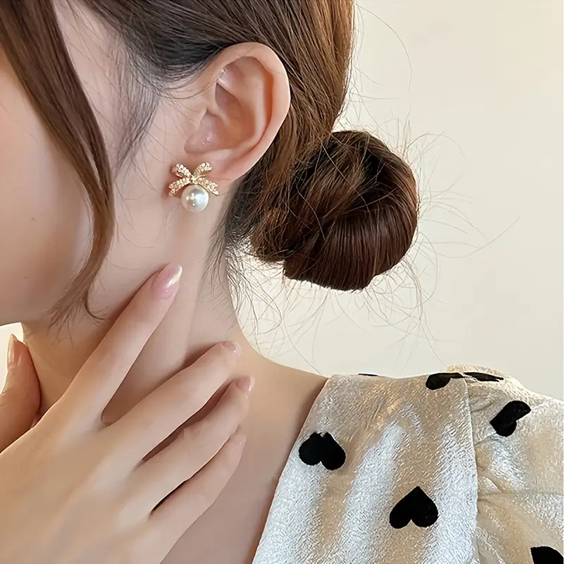Şık Vintage Tarzı Zirkon Taşlı İnci Detaylı Küpel