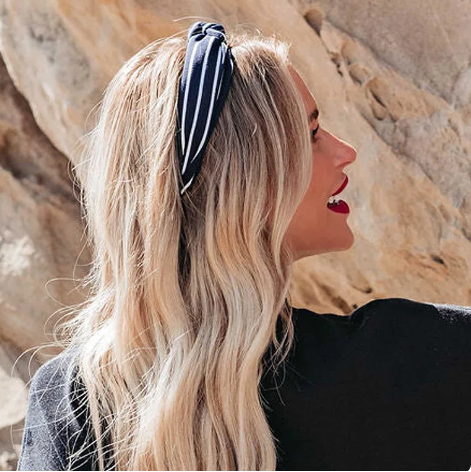 Siyah Beyaz Çizgili Düğümlü Geniş Kadın Taç - Trendy ve Şık Saç Aksesuarı