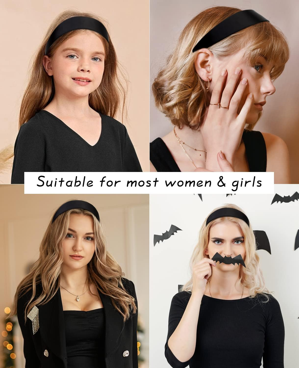 Siyah Klasik Kalın Saten Taç Saç Bandı, her yaş grubundan kadın, genç ve çocuklar için uygundur.