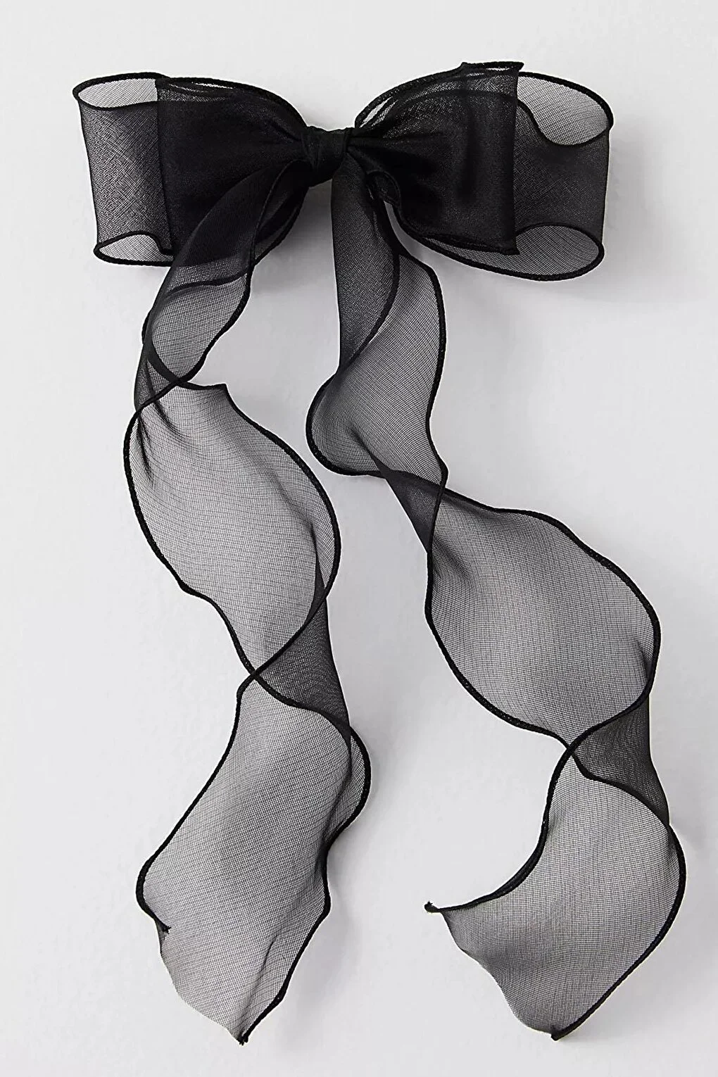 Siyah Tül Uzun Kuyruklu Fiyonk Toka - Otomatik Klipsli Şık Saç Aksesuarı