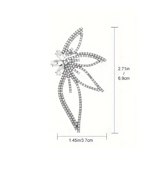 Zarif Gümüş Kaplama Full Taşlı Çiçek Küpe, Paslanmaz Çelik Kulak İğnesi, 1 Adet