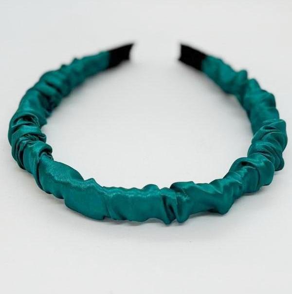 Zümrüt Retro Saten Büzgülü Kadın Taç, Saç Bandı, Saten Taçlar, Büzgülü Taçlar
