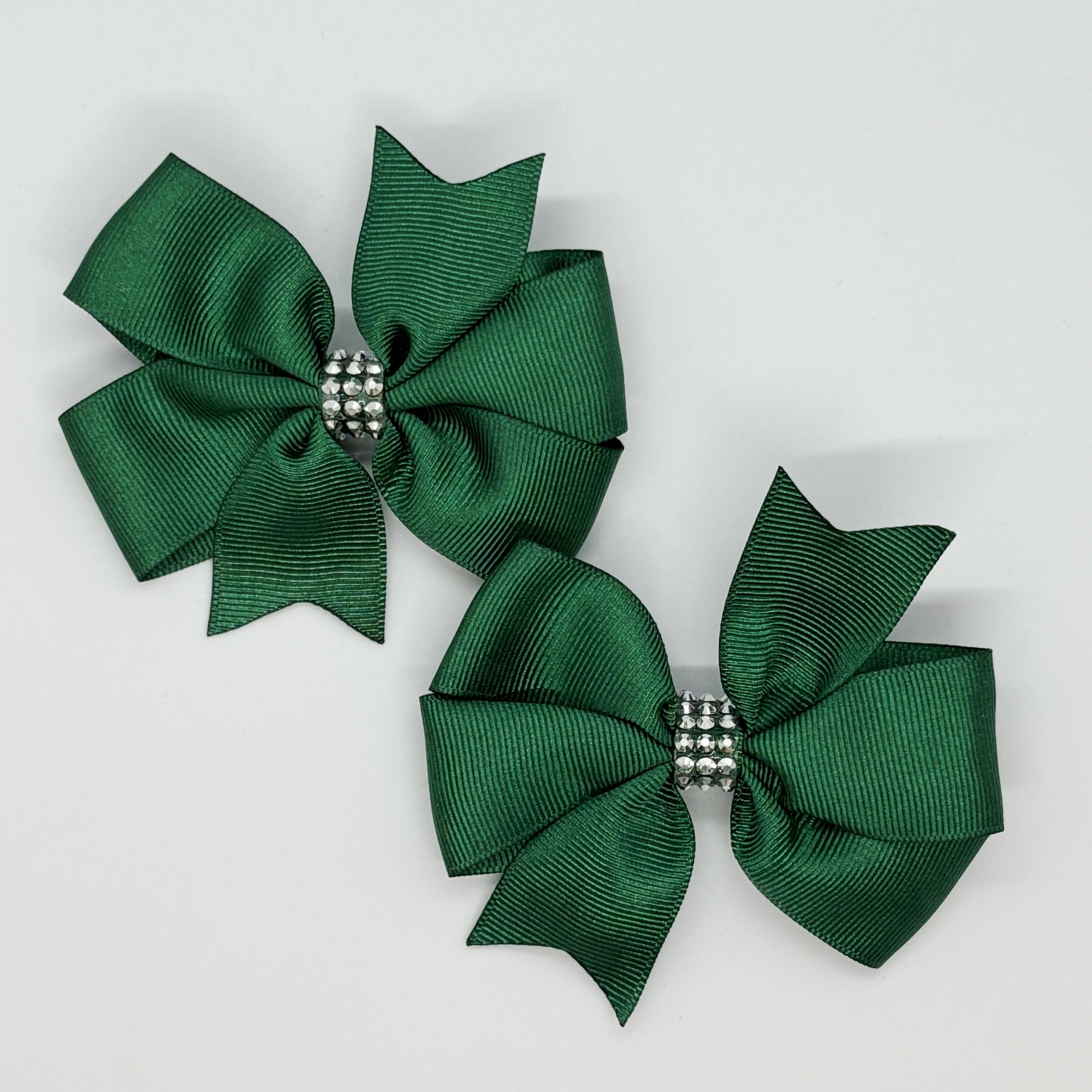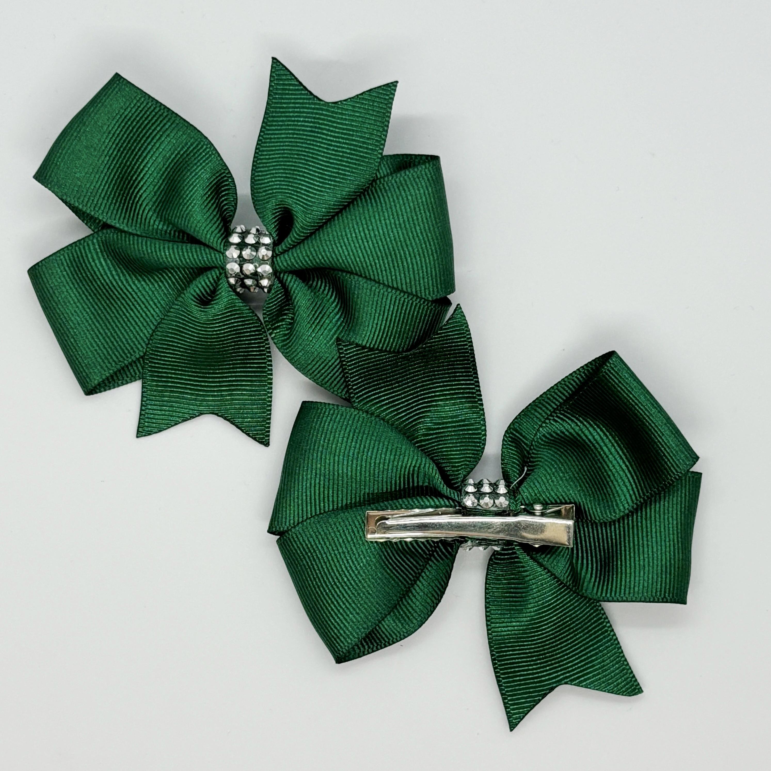 Zümrüt Yeşili Taş Detaylı Klipsli Saten Kurdele Bebek ve Çocuk Tokası - 2 Adet